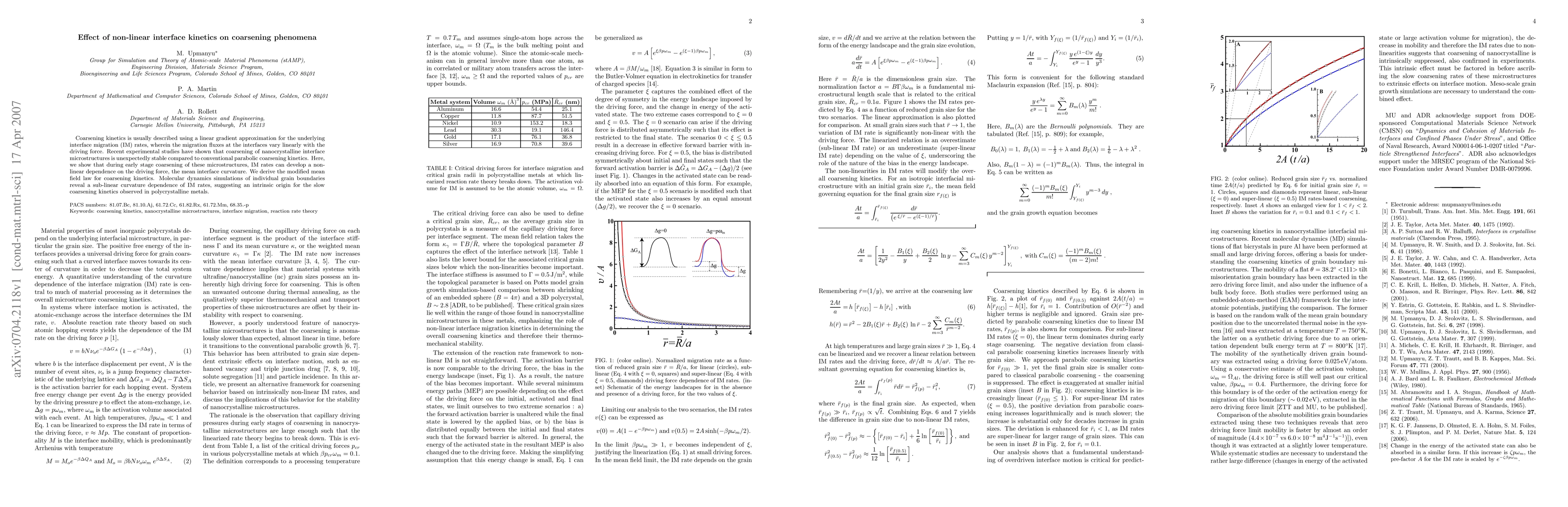 Coarsening kinetics is usually described using a linear gradient approximation for the underlying interface migration (IM) rates, wherein the migration fluxes at the interfaces vary linearly with the driving force. Recent experimental studies have shown that coarsening of nanocrystalline interface microstructures is unexpectedly stable compared to conventional parabolic coarsening kinetics. Here, we show that during early stage coarsening of these microstructures, IM rates can develop a non-linear dependence on the driving force, the mean interface curvature. We derive the modified mean field law for coarsening kinetics. Molecular dynamics simulations of individual grain boundaries reveal a sub-linear curvature dependence of IM rates, suggesting an intrinsic origin for the slow coarsening kinetics observed in polycrystalline metals.