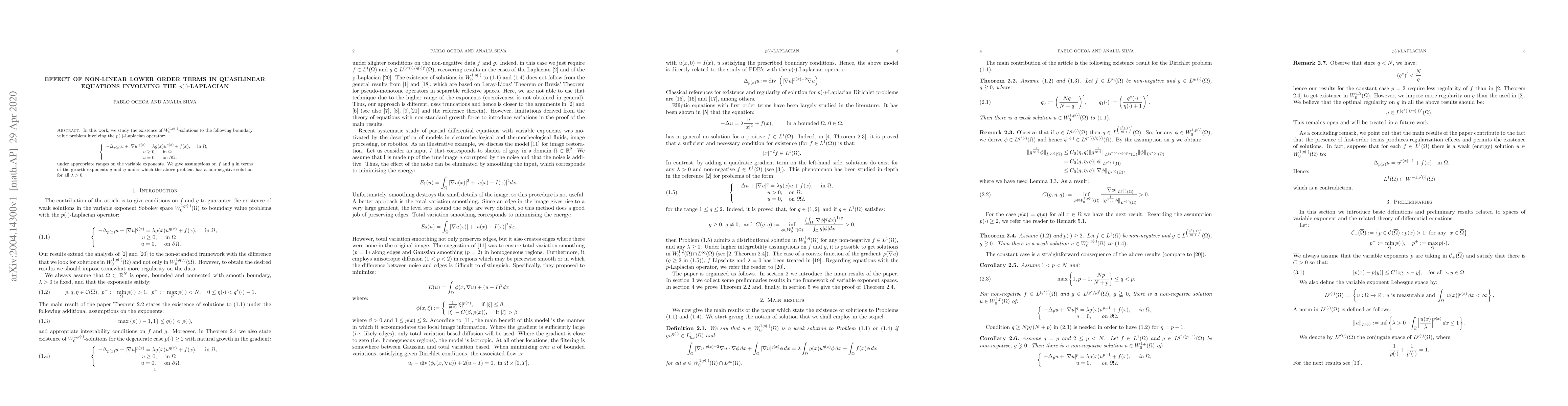 The paper studies the existence of solutions to a boundary value problem involving the $p(x)$-Laplacian operator under specific ranges for variable exponents, with conditions on growth exponents that guarantee non-negative solutions for all positive lambda values.