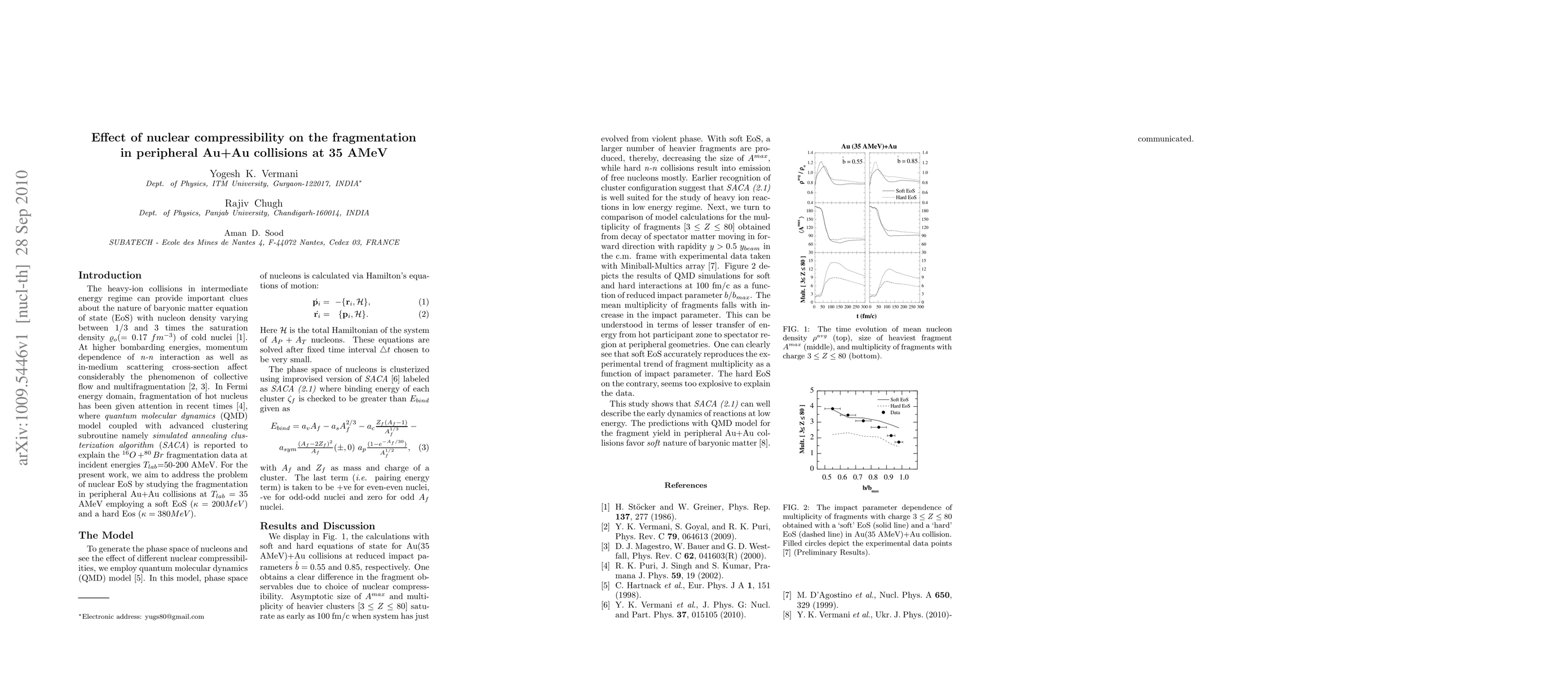 This paper investigates the fragmentation in peripheral Au+Au collisions at 35 AMeV, finding that a soft equation of state (EoS) accurately reproduces the observed trend of decreasing fragment multiplicity with impact parameter, while a hard EoS appears too explosive.
