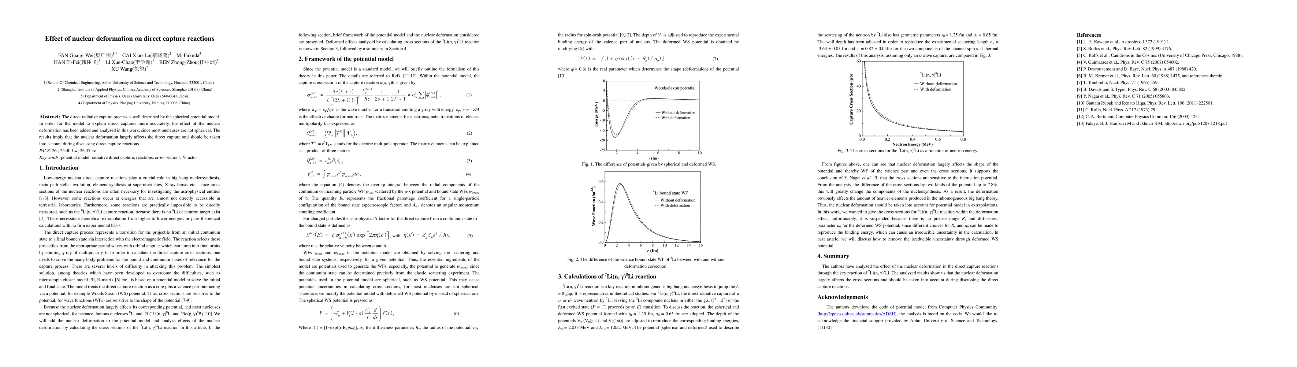 Summary: This study investigates how nuclear deformation impacts direct radiative capture reactions, finding that incorporating deformation improves the model's accuracy. The results suggest that nuclear deformation significantly influences direct capture processes and should be considered in related discussions.