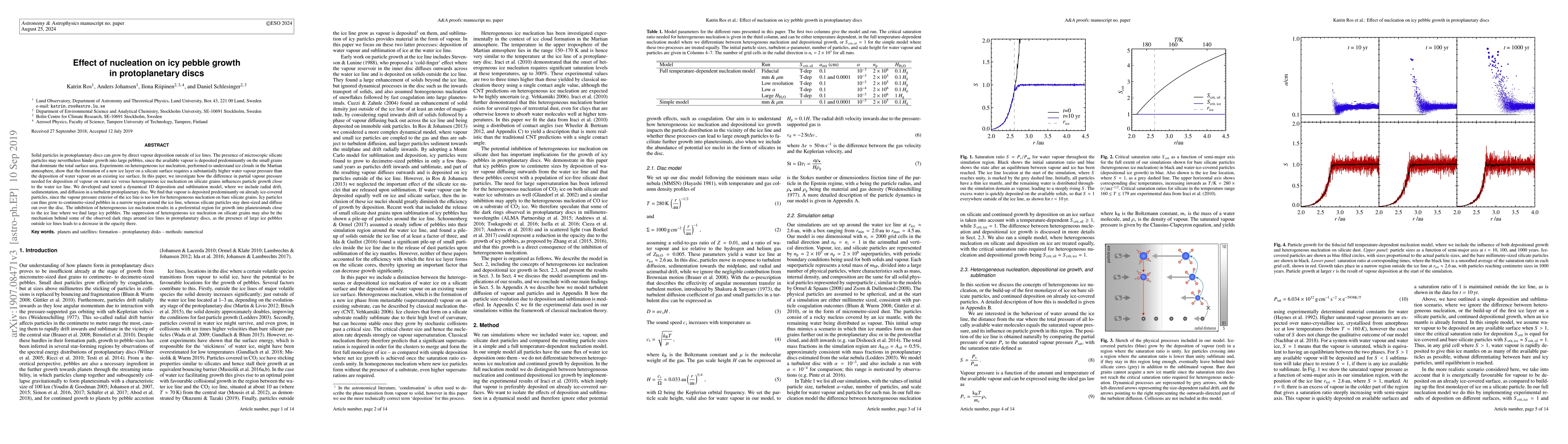 This paper investigates how the difference in vapour pressure needed for deposition on water ice versus heterogeneous nucleation on silicate grains affects particle growth near the water ice line in protoplanetary discs. The study finds that vapour predominantly deposits on ice-covered particles, leading to the growth of centimetre-sized icy pebbles near the ice line, while silicate particles remain dust-sized and diffuse away.