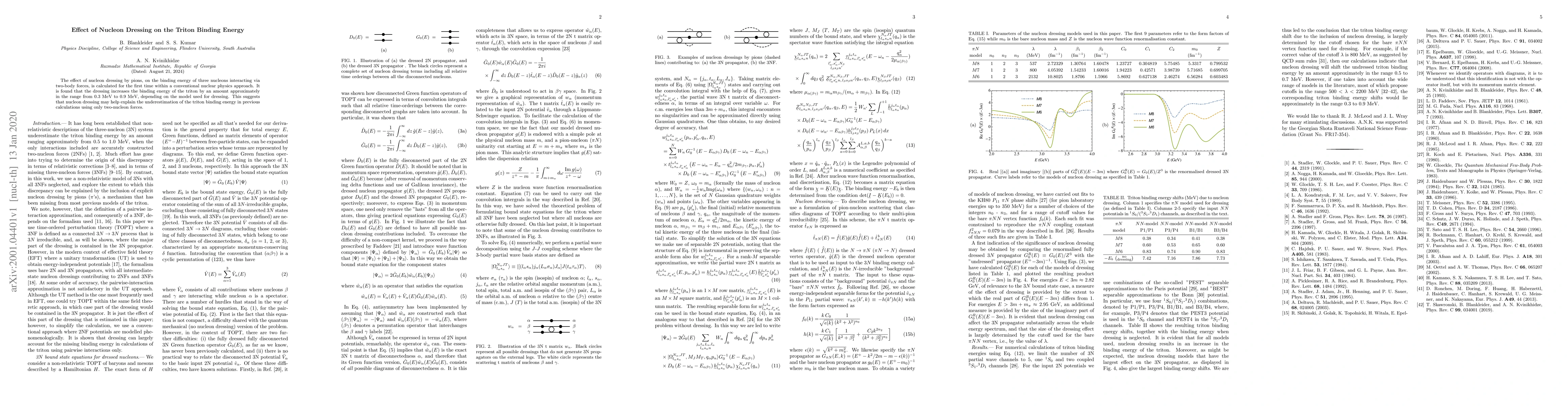 The addition of pion dressing increases triton binding energy by 0.3-0.9 MeV in conventional nuclear physics calculations, potentially resolving underestimations with two-nucleon forces only.