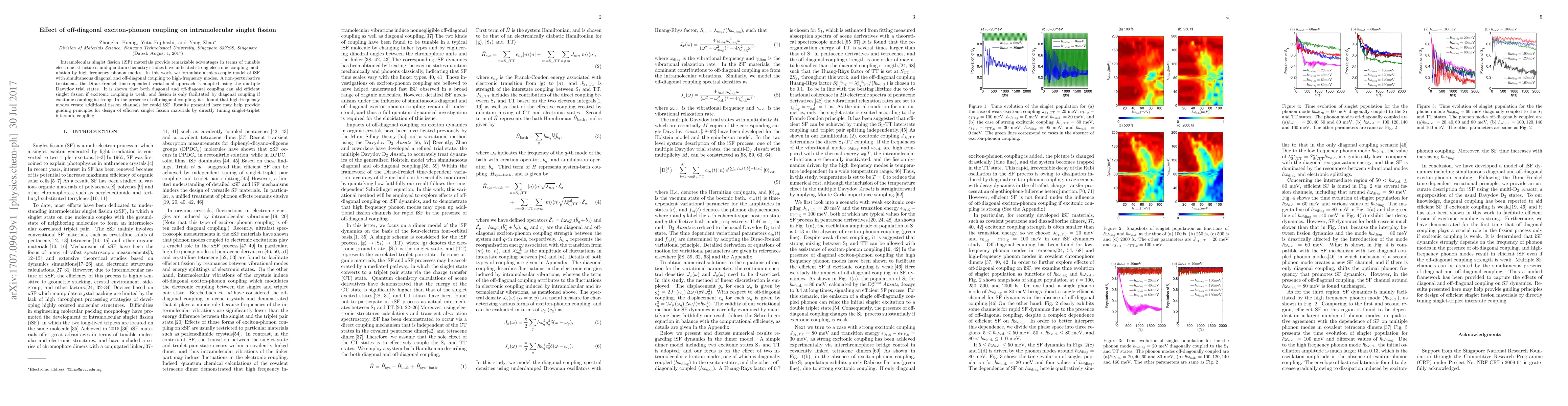 This paper investigates the role of off-diagonal exciton-phonon coupling in intramolecular singlet fission, demonstrating that it can create additional fission channels for rapid fission, especially when excitonic coupling is weak. The study uses a non-perturbative approach to show that both diagonal and off-diagonal couplings can enhance fission efficiency.