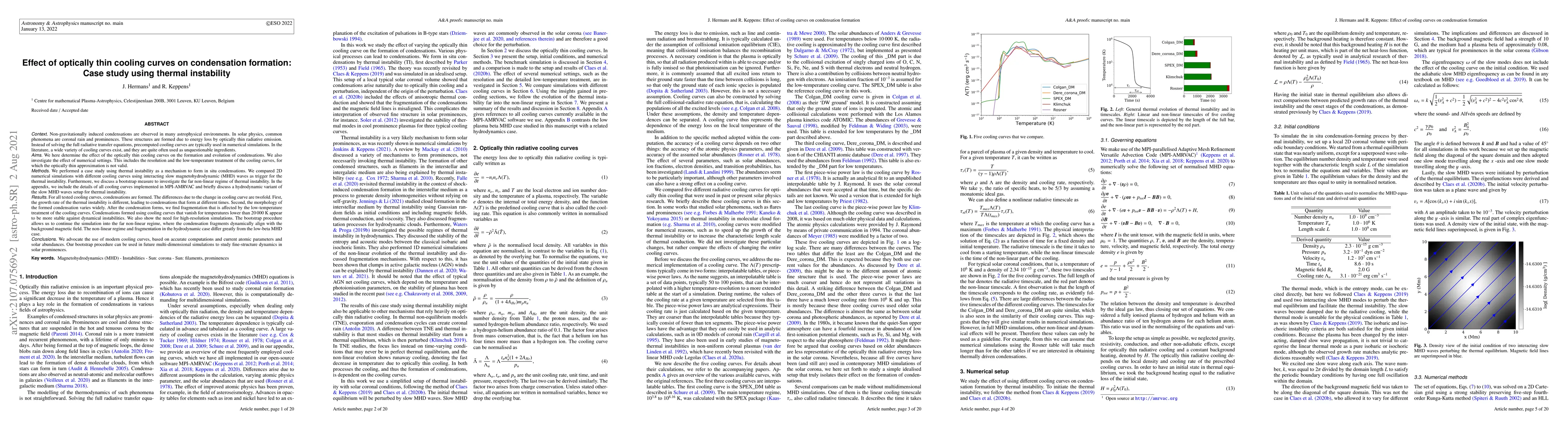 This paper investigates the impact of optically thin cooling curves on condensation formation in astrophysical environments using thermal instability as a trigger. It finds that different cooling curves lead to varying growth rates and morphologies of condensations, with those that vanish below 20,000 K producing more stable structures. The study recommends modern cooling curves for accurate simulations and proposes a bootstrap method for future multi-dimensional studies.