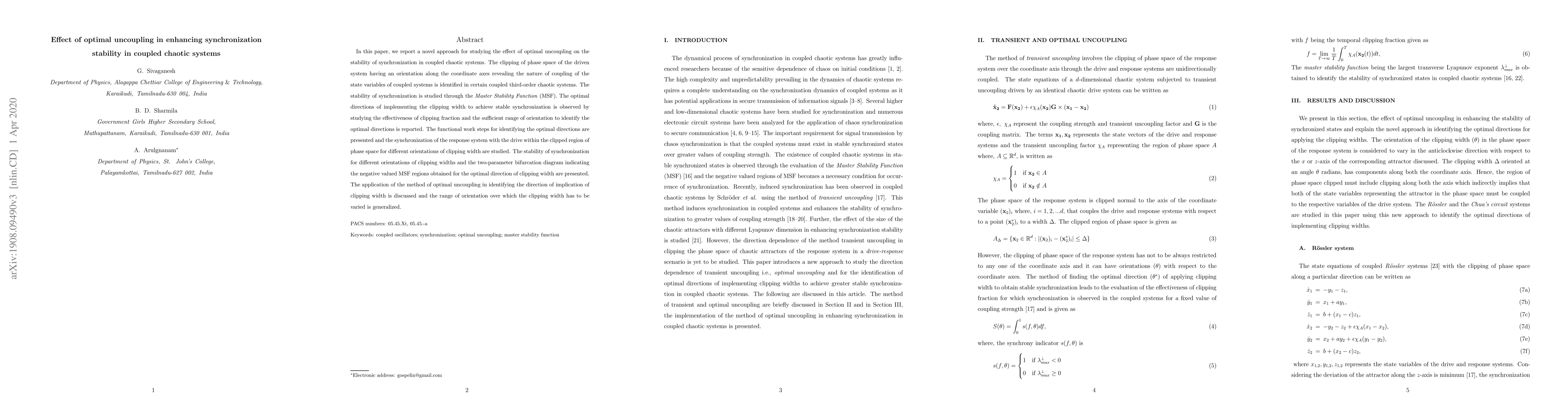 In this paper, we report a novel approach for studying the effect of optimal uncoupling on the stability of synchronization in coupled chaotic systems. The clipping of phase space of the driven system having an orientation along the coordinate axes revealing the nature of coupling of the state variables of coupled systems is identified in certain coupled third-order chaotic systems. The stability of synchronization is studied through the {\emph{Master Stability Function}} (MSF). The optimal directions of implementing the clipping width to achieve stable synchronization is observed by studying the effectiveness of clipping fraction and the sufficient range of orientation to identify the optimal directions is reported. The functional work steps for identifying the optimal directions are presented and the synchronization of the response system with the drive within the clipped region of phase space for different orientations of clipping width are studied. The stability of synchronization for different orientations of clipping widths and the two-parameter bifurcation diagram indicating the negative valued MSF regions obtained for the optimal direction of clipping width are presented. The application of the method of optimal uncoupling in identifying the direction of implication of clipping width is discussed and the range of orientation over which the clipping width has to be varied is generalized.