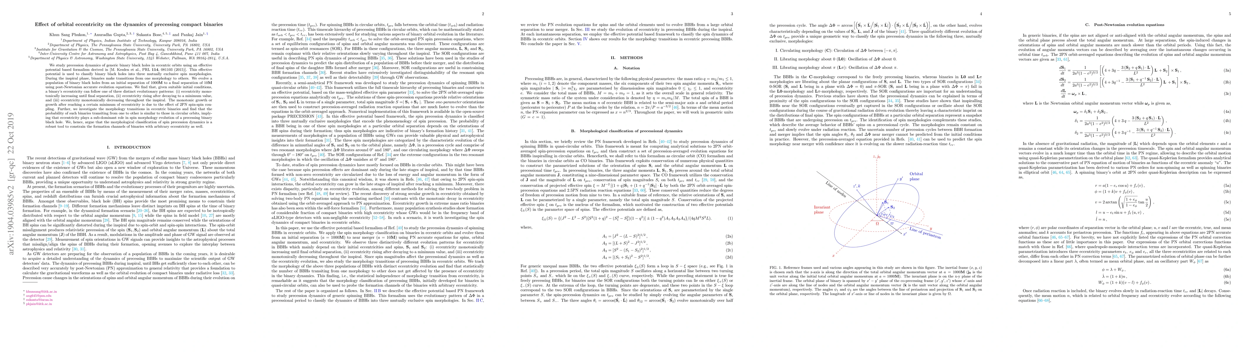 This paper investigates the precession dynamics of precessing compact binaries, specifically black holes, in eccentric orbits, classifying them into three spin morphologies. It finds three distinct eccentricity patterns during inspiral, influenced by 2PN spin-spin coupling, and concludes that eccentricity has a sub-dominant role in spin morphology evolution, making morphological classification a robust tool for understanding binary formation.
