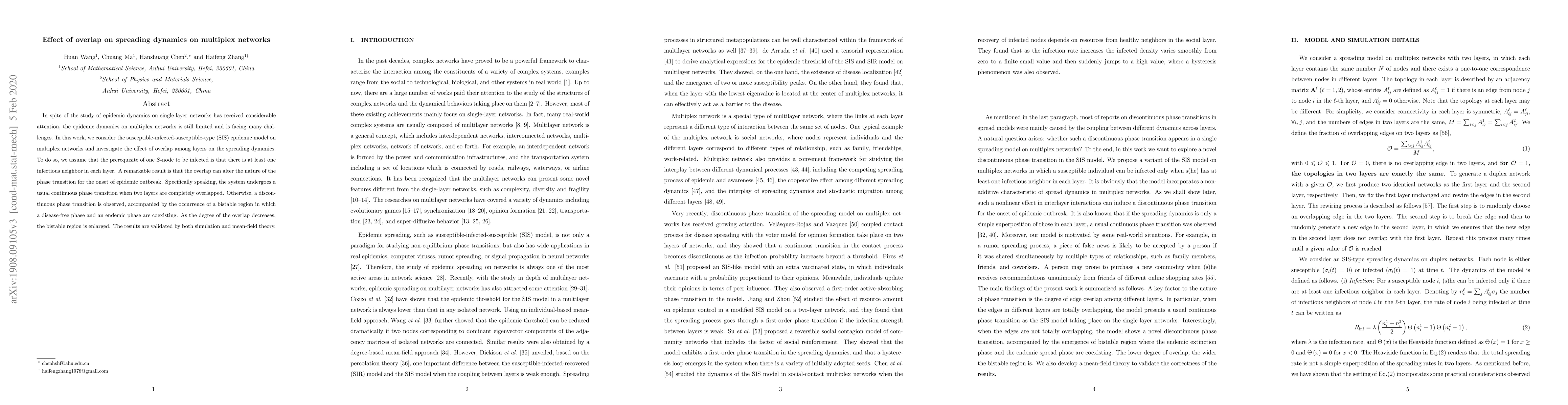 This paper examines the SIS epidemic model on multiplex networks, finding that overlap among layers alters spreading dynamics, leading to either continuous or discontinuous phase transitions depending on the degree of overlap. Simulation and mean-field theory confirm the emergence of a bistable region as overlap decreases.