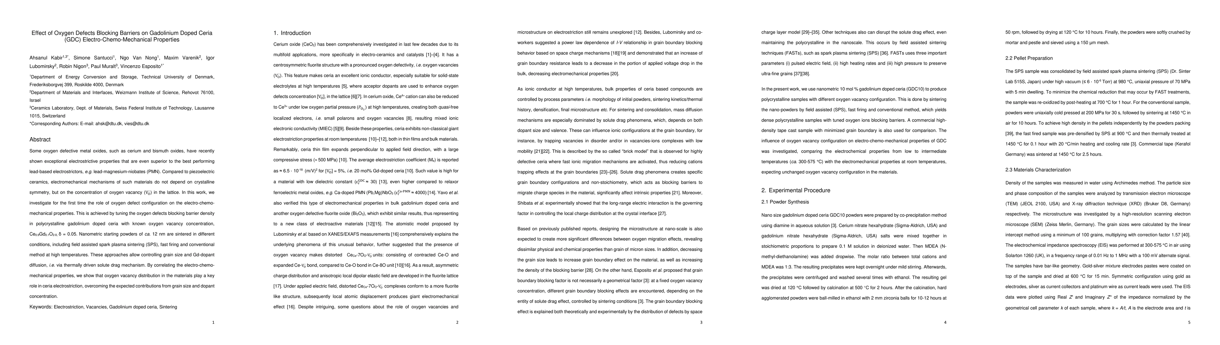 This study investigates how varying oxygen defect configurations affect the electro-chemo-mechanical properties of gadolinium-doped ceria (GDC). By controlling oxygen vacancy distribution through different sintering methods, the research demonstrates that oxygen defects significantly influence GDC's electrostriction, more so than grain size or dopant concentration.