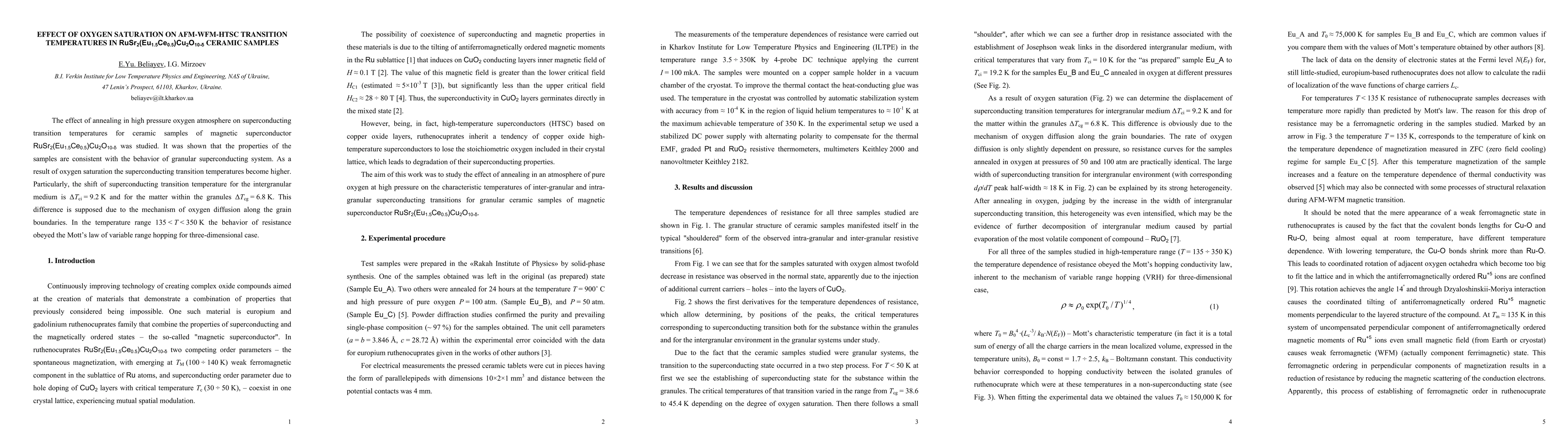 The effect of annealing in high pressure oxygen atmosphere on superconducting transition temperatures for ceramic samples of magnetic superconductor europium based 1222 ruthenocuprate was studied. It was shown that the properties of the samples are consistent with the behavior of granular superconducting system. As a result of oxygen saturation the superconducting transition temperatures become higher. Particularly, the shift of superconducting transition temperature for the intergranular medium is 9.2 K and for the matter within the granules 6.8 K. This difference is supposed due to the mechanism of oxygen diffusion along the grain boundaries. In the temperature range between 135 K and 350 K the behavior of resistance obeyed the Mott law of variable range hopping for three dimensional case.