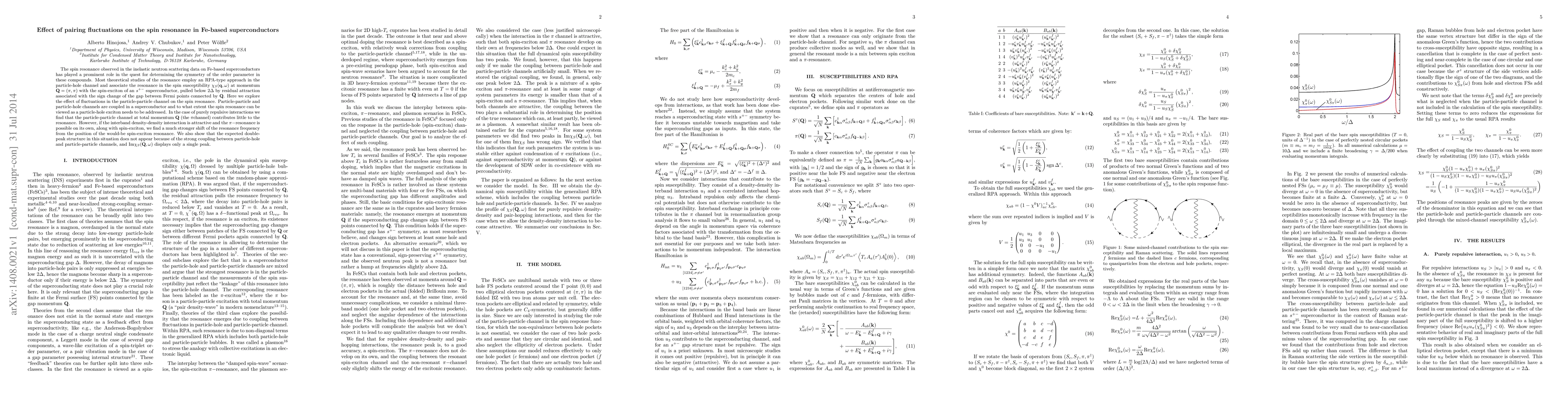 The spin resonance observed in the inelastic neutron scattering data on Fe-based superconductors has played a prominent role in the quest for determining the symmetry of the order parameter in these compounds. Most theoretical studies of the resonance employ an RPA-type approach in the particle-hole channel and associate the resonance in the spin susceptibility $\chi_S (\mathbf{q}, \omega)$ at momentum ${\bf Q} = (\pi,\pi)$ with the spin-exciton of an $s^{+-}$ superconductor, pulled below $2\Delta$ by residual attraction associated with the sign change of the gap between Fermi points connected by ${\bf Q}$. Here we explore the effect of fluctuations in the particle-particle channel on the spin resonance. Particle-particle and particle-hole channels are coupled in a superconductor and to what extent the spin resonance can be viewed as a particle-hole exciton needs to be addressed. In the case of purely repulsive interactions we find that the particle-particle channel at total momentum ${\bf Q}$ (the $\pi $channel) contributes little to the resonance. However, if the interband density-density interaction is attractive and the $\pi-$resonance is possible on its own, along with the spin-exciton, we find a much stronger shift of the resonance frequency from the position of the would-be spin-exciton resonance. We also show that the expected double-peak structure in this situation does not appear because of the strong coupling between particle-hole and particle-particle channels, and $\mathrm{Im} \chi_S ({\bf Q}, \omega)$ displays only a single peak.