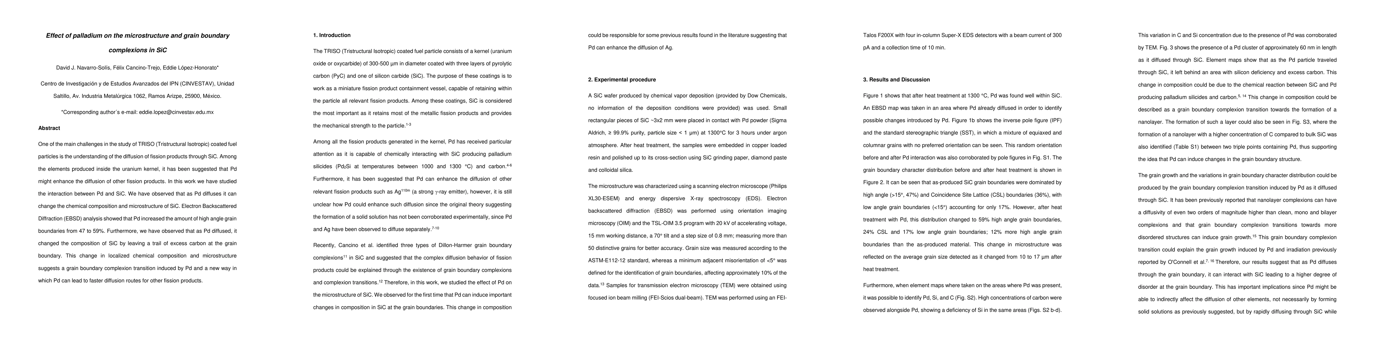 Research finds that palladium diffuses into silicon carbide (SiC) altering its microstructure and grain boundary composition, potentially creating faster diffusion routes for fission products. This discovery has implications for understanding TRISO coated fuel particles.