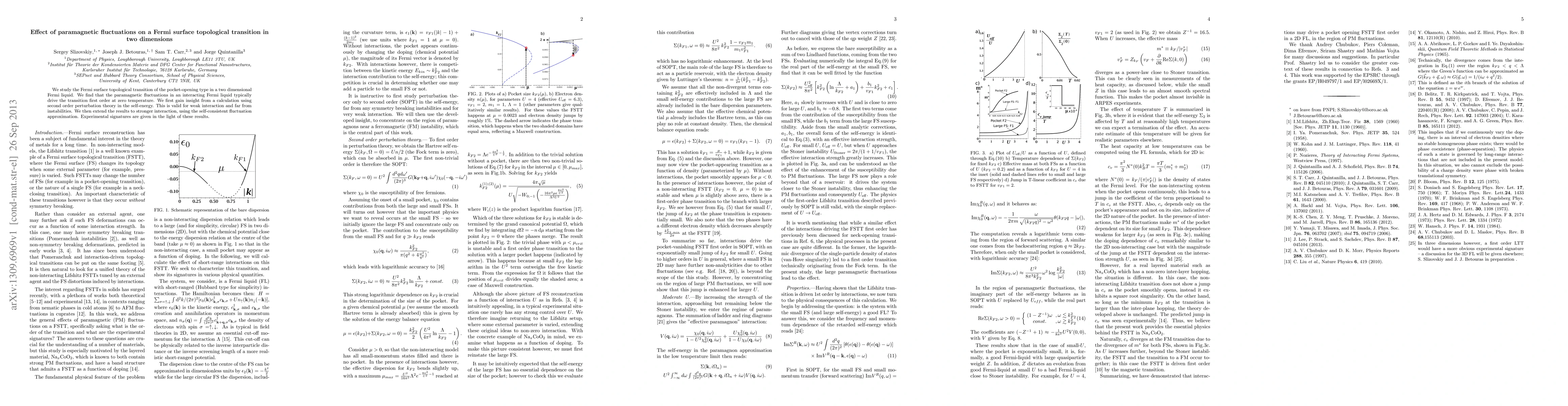 We study the Fermi surface topological transition of the pocket-opening type in a two dimensional Fermi liquid. We find that the paramagnetic fluctuations in an interacting Fermi liquid typically drive the transition first order at zero temperature. We first gain insight from a calculation using second order perturbation theory in the self-energy. This is valid for weak interaction and far from instabilities. We then extend the results to stronger interaction, using the self-consistent fluctuation approximation. Experimental signatures are given in the light of these results.