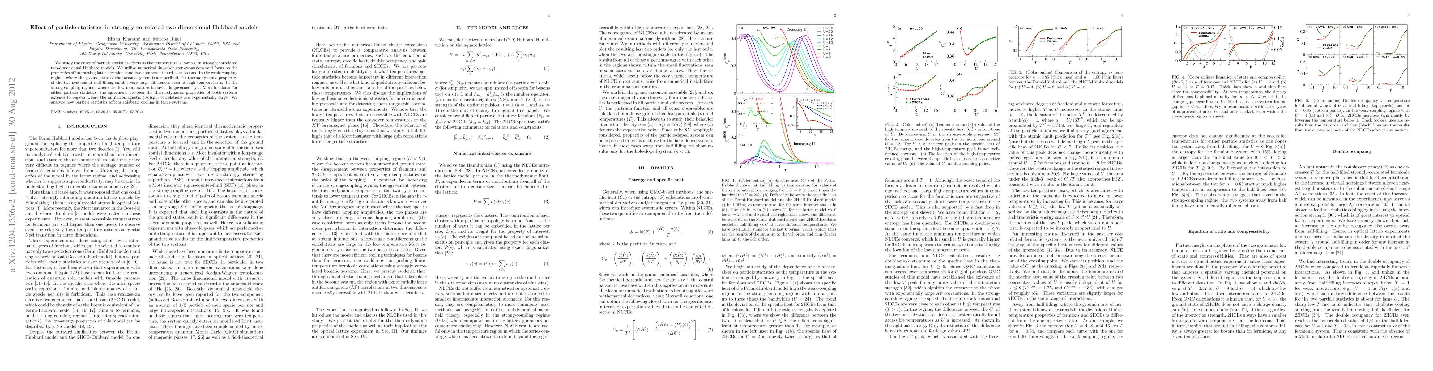 This paper investigates the impact of particle statistics on thermodynamic properties in two-dimensional Hubbard models, revealing significant differences in weakly coupled systems but convergence in strongly coupled regimes, with a focus on adiabatic cooling effects.