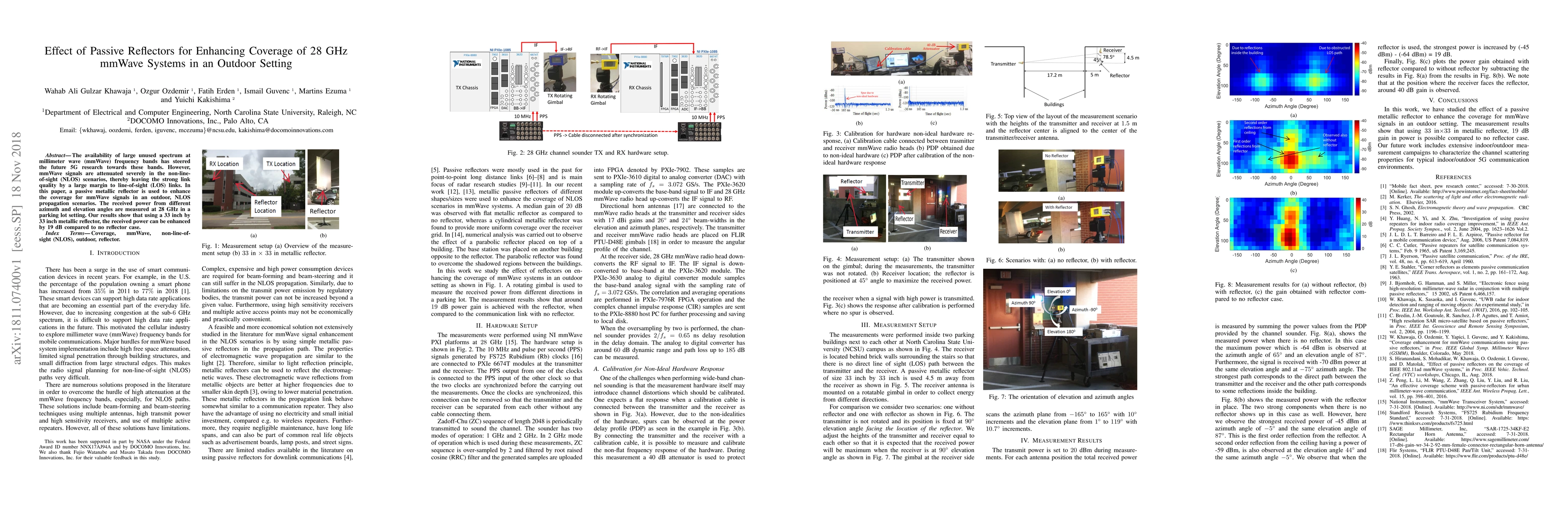 This paper investigates the use of passive metallic reflectors to improve the coverage of 28 GHz mmWave systems in outdoor, non-line-of-sight scenarios, demonstrating a 19 dB enhancement in received power over a control case without reflectors.