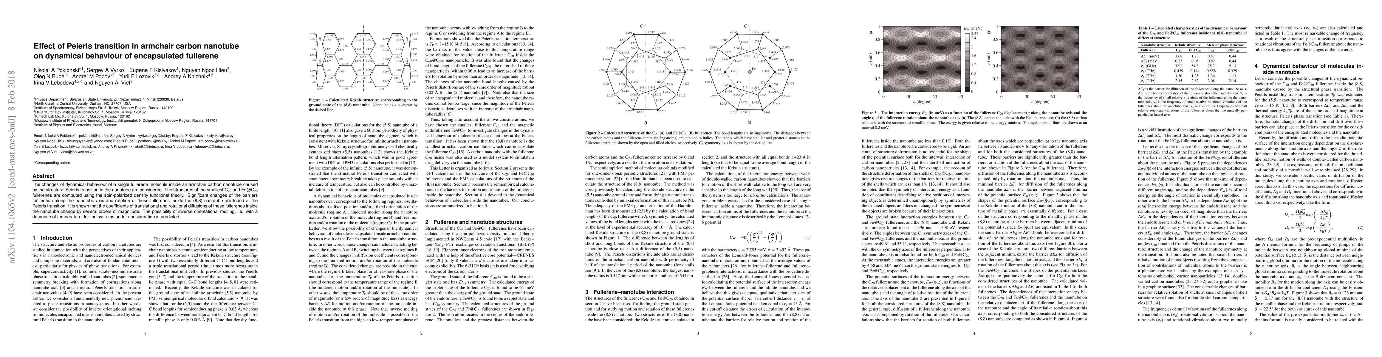 This research investigates how the Peierls transition in an armchair carbon nanotube affects the dynamical behavior of encapsulated fullerene molecules. The study reveals significant alterations in the motion and diffusion barriers of C20 and Fe@C20 fullerenes inside the (8,8) nanotube, with notable changes in translational and rotational diffusion coefficients.