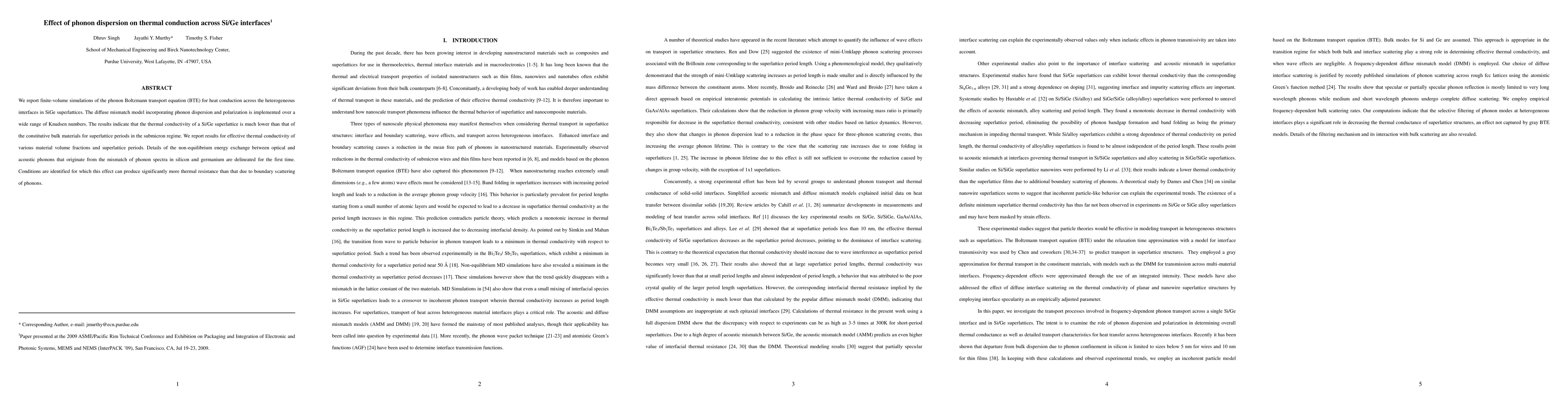 This paper uses finite-volume simulations to study phonon-based thermal conduction across Si/Ge superlattice interfaces, revealing that thermal conductivity is significantly lower than bulk materials due to mismatch in phonon spectra. The diffuse mismatch model highlights non-equilibrium energy exchange between phonons, identifying conditions where this effect surpasses boundary scattering in thermal resistance.