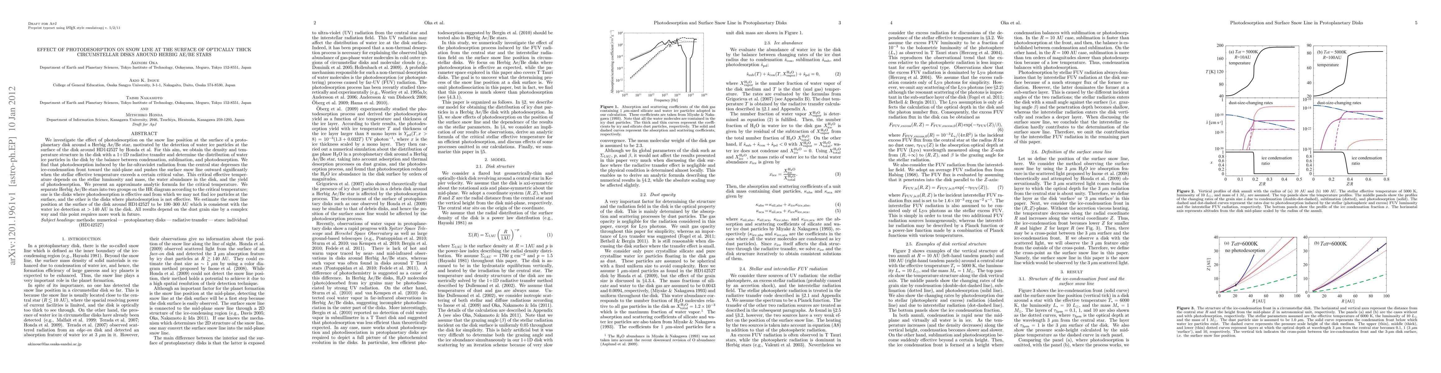 This study examines how photodesorption affects the snow line in optically thick circumstellar disks around Herbig Ae/Be stars, finding that far-ultraviolet radiation from the star can push the snow line outward when the stellar effective temperature exceeds a critical value. The critical temperature depends on various factors, including stellar luminosity and the abundance of water in the disk.