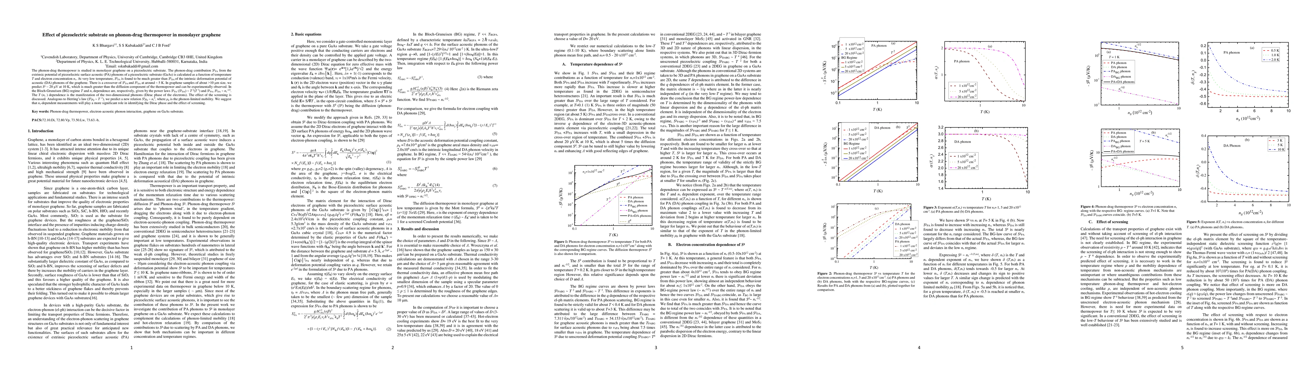 The phonon-drag thermopower is studied in monolayer graphene on a piezoelectric substrate. The phonon-drag contribution S^g_PA from the extrinsic potential of piezoelectric surface acoustic (PA) phonons of a piezoelectric substrate (GaAs) is calculated as a function of temperature T and electron concentration n_s. At very low temperature, S^g_PA is found to be much greater than S^g_DA of the intrinsic deformation potential of acoustic (DA) phonons of the graphene. There is a crossover of S^g_PA and S^g_DA at around ~5 K. In graphene samples of about >10 um size, we predict S_g ~20 uV at 10 K, which is much greater than the diffusion component of the thermopower and can be experimentally observed. In the Bloch-Gruneisen (BG) regime T and n_s dependence are, respectively, given by the power laws S^g_PA (S^g_DA) ~ T^2(T^3) and S^g_PA, S^g_DA ~ n_s^(-1/2). The T (n_s) dependence is the manifestation of the two-dimensional phonons (Dirac phase of the electrons). The effect of the screening is discussed. Analogous to Herring's law (S_g mu_p ~T^-1), we predict a new relation S_g mu_p ~n_s^0, where mu_p is the phonon-limited mobility. We suggest that n_s dependent measurements will play a more significant role in identifying the Dirac phase and the effect of screening.