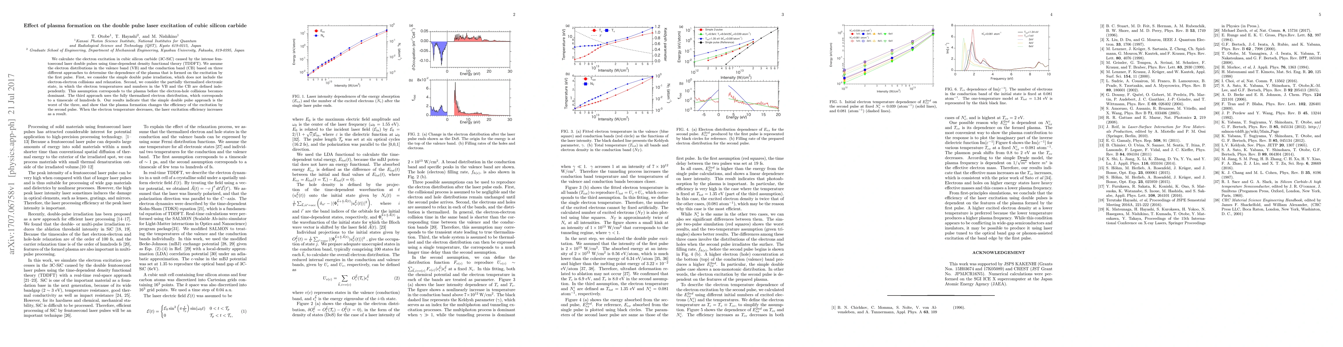 This paper investigates how intense femtosecond laser double pulses affect cubic silicon carbide, finding that plasma formation changes the efficiency of excitation with decreasing electron temperature.