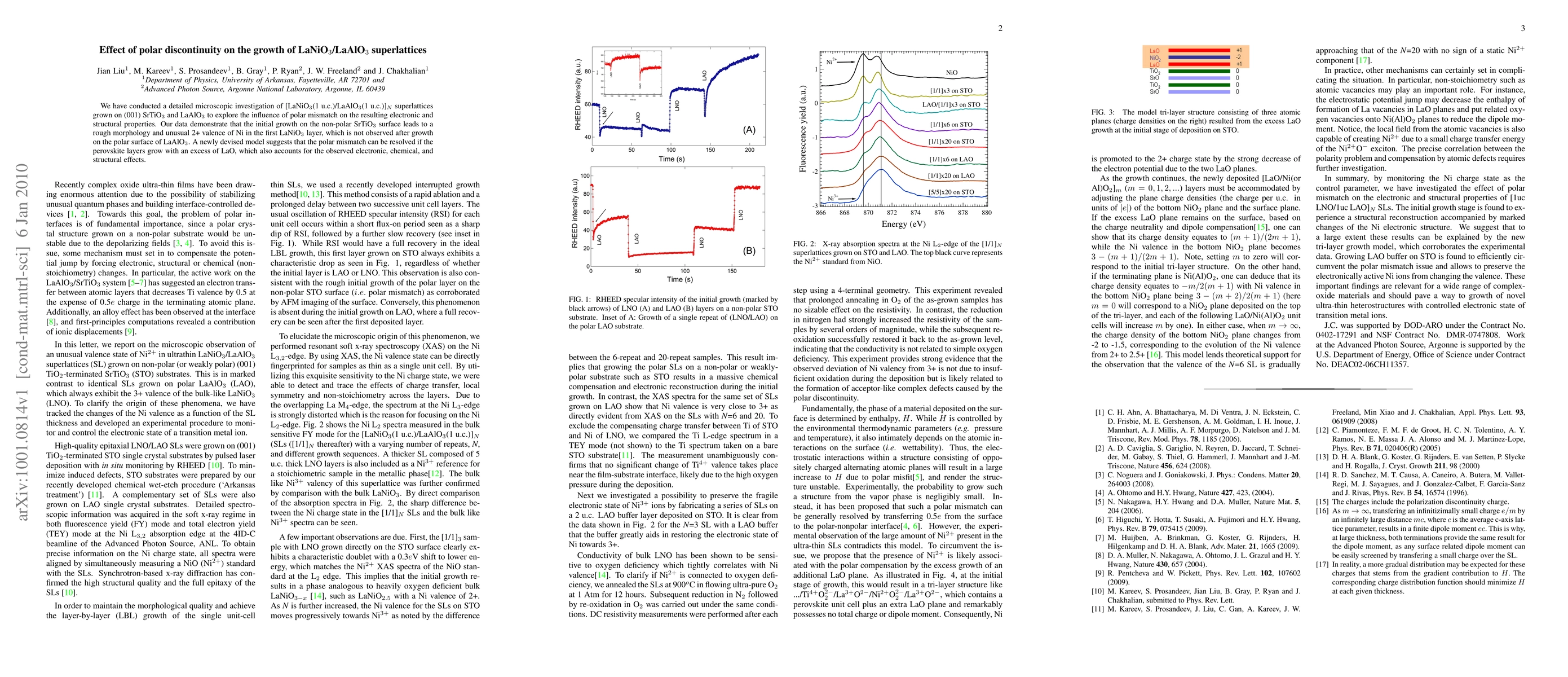This study investigates the impact of polar discontinuity on the growth of LaNiO3/LaAlO3 superlattices, revealing that initial growth on non-polar SrTiO3 results in a rough morphology and unusual Ni valence, while growth on polar LaAlO3 avoids these effects, suggesting a resolution mechanism involving excess LaO.