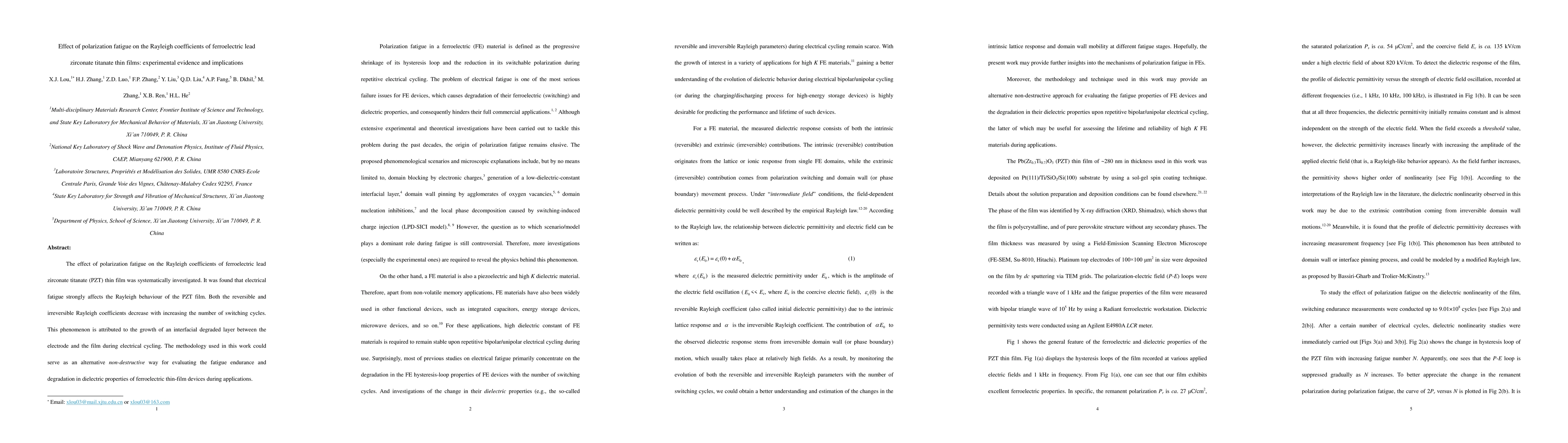 This study investigates the impact of polarization fatigue on the Rayleigh coefficients in ferroelectric PZT thin films, revealing that fatigue diminishes both reversible and irreversible Rayleigh coefficients due to the formation of an interfacial degraded layer. This methodology offers a non-destructive means to assess fatigue and degradation in ferroelectric thin-film devices.