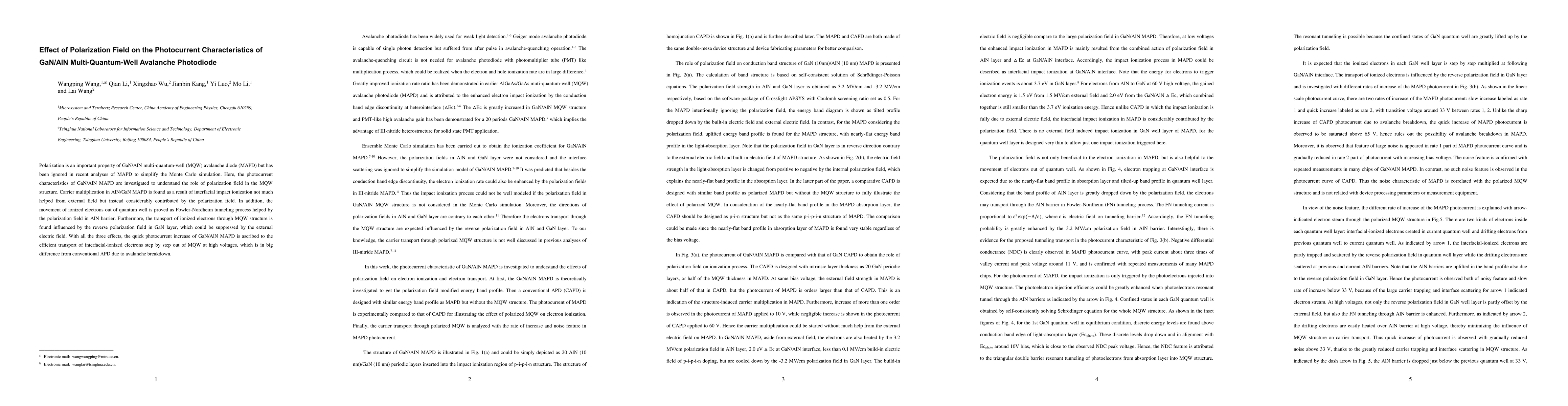 This study investigates the impact of polarization field on the photocurrent characteristics of GaN/AlN multi-quantum-well avalanche photodiodes, revealing that carrier multiplication is driven by interfacial impact ionization significantly influenced by the polarization field. The polarization field also facilitates the Fowler-Nordheim tunneling process and affects electron transport through the MQW structure, leading to a rapid photocurrent increase at high voltages.