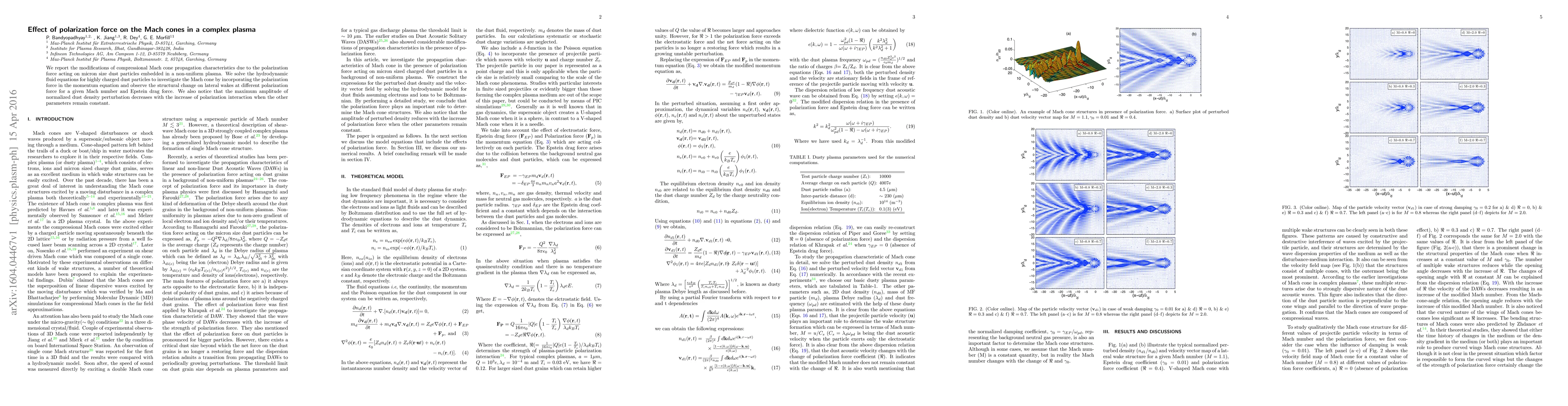 This study investigates how polarization force affects the propagation of Mach cones in a complex plasma, finding that it alters the structural characteristics of lateral wakes and reduces the amplitude of dust density perturbations, while maintaining other parameters constant.