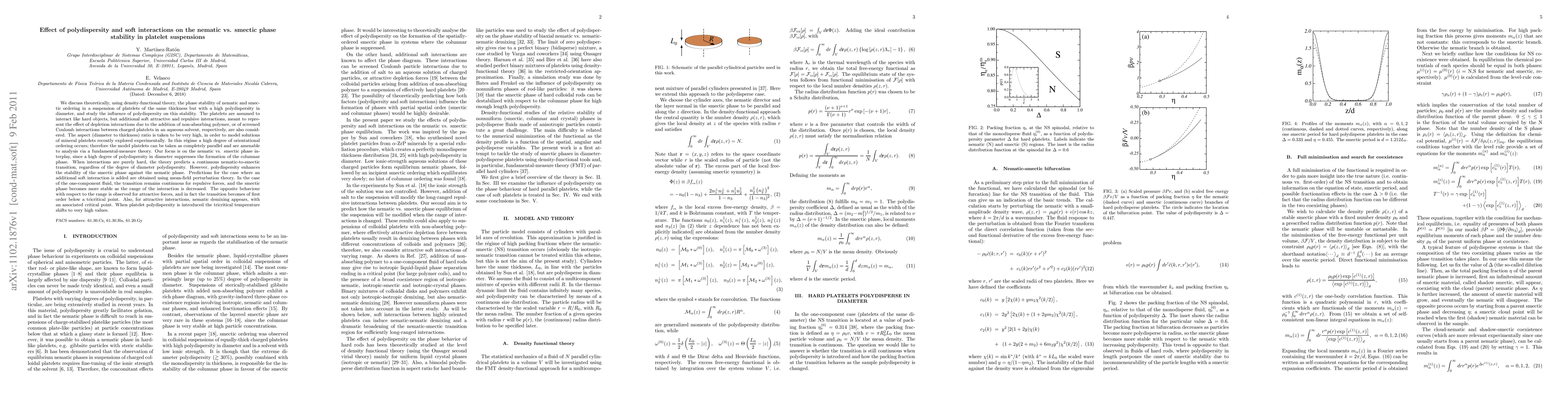This paper uses density-functional theory to explore the phase stability of nematic and smectic ordering in platelet suspensions with high polydispersity, focusing on how diameter variation affects this stability. It finds that polydispersity enhances smectic phase stability over nematic, and soft interactions can induce first-order transitions and nematic demixing.