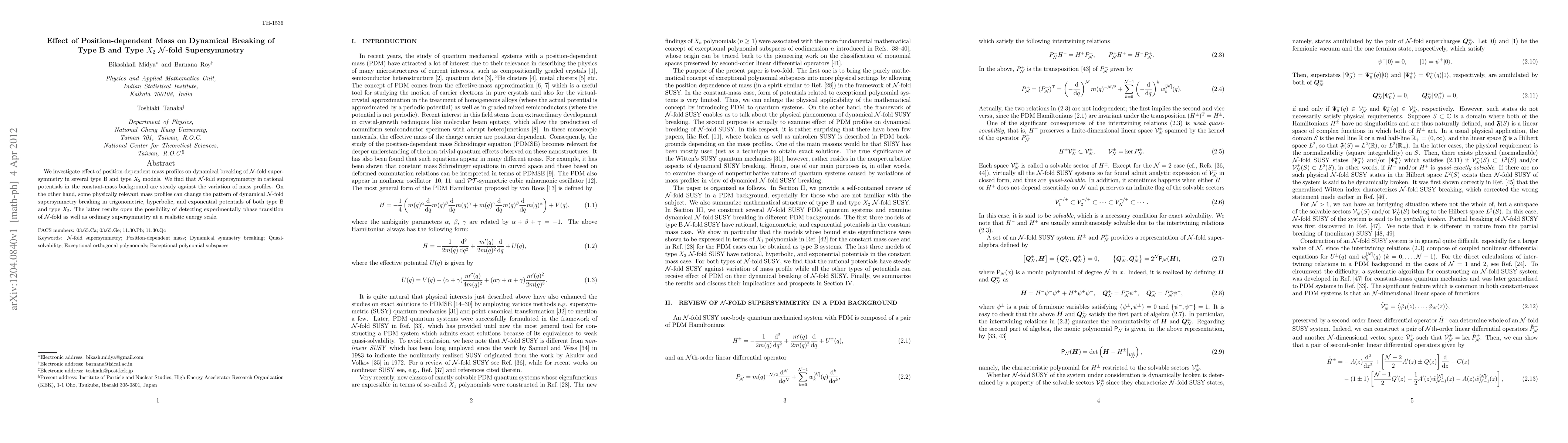 This paper examines how position-dependent mass profiles influence the dynamical breaking of N-fold supersymmetry in type B and type X_2 models. It finds that constant-mass backgrounds maintain N-fold supersymmetry, but varying mass profiles can alter the breaking pattern in trigonometric, hyperbolic, and exponential potentials, potentially enabling experimental detection of such transitions.