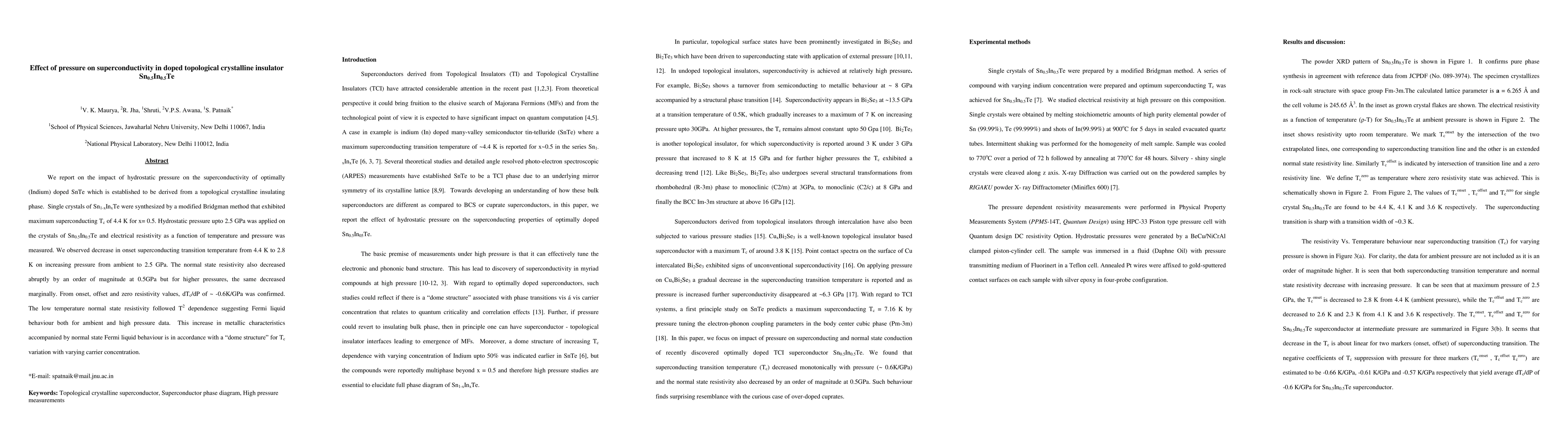 This study investigates the effect of hydrostatic pressure on the superconductivity of Sn0.5In0.5Te, a topological crystalline insulator. The research shows a decrease in superconducting transition temperature from 4.4 K to 2.8 K under 2.5 GPa pressure, with a dTc/dP of -0.6 K/GPa, indicating pressure-induced changes in metallic characteristics.