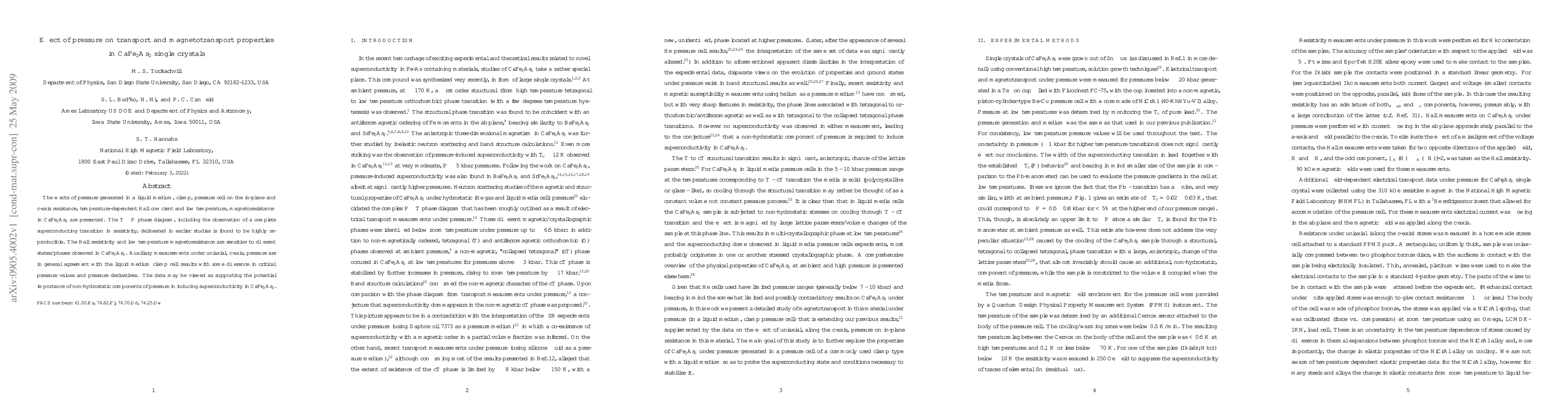 The effects of pressure generated in a liquid medium, clamp, pressure cell on the in-plane and c-axis resistance, temperature-dependent Hall coefficient and low temperature, magnetoresistance in CaFe2As2 are presented. The T - P phase diagram, including the observation of a complete superconducting transition in resistivity, delineated in earlier studies is found to be highly reproducible. The Hall resistivity and low temperature magnetoresistance are sensitive to different states/phases observed in CaFe2As2. Auxiliary measurements under uniaxial, c-axis, pressure are in general agreement with the liquid medium clamp cell results with some difference in critical pressure values and pressure derivatives. The data may be viewed as supporting the potential importance of non-hydrostatic components of pressure in inducing superconductivity in CaFe2As2.