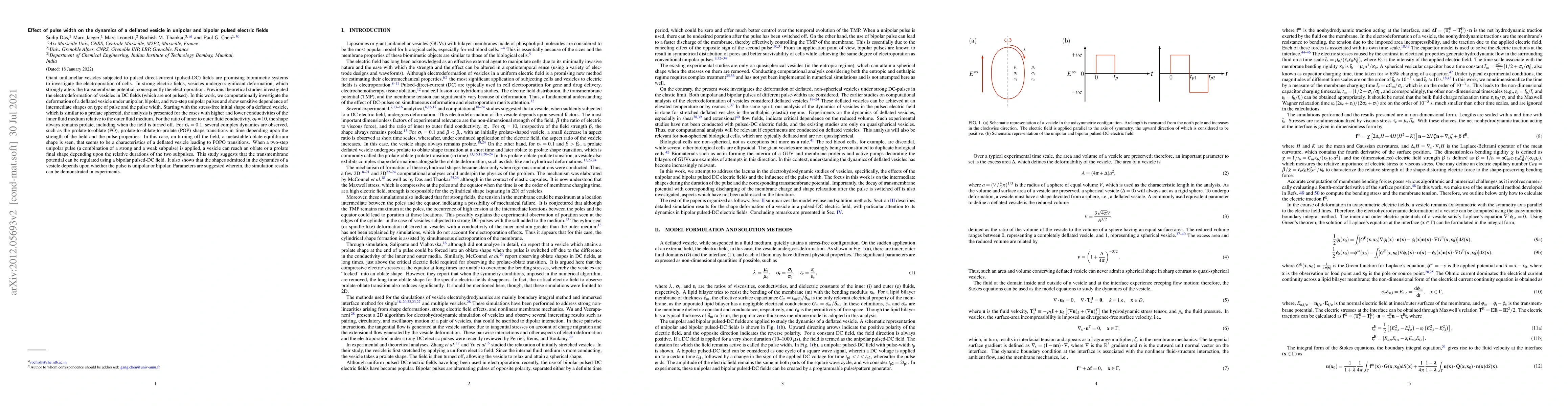 This paper computationally explores how pulse width affects the deformation dynamics of a deflated vesicle under unipolar and bipolar pulsed electric fields, revealing sensitive dependence on pulse type and width. For high inner-to-outer conductivity ratios, vesicles maintain a prolate shape, while lower ratios induce complex prolate-to-oblate transitions influenced by field strength and pulse properties.