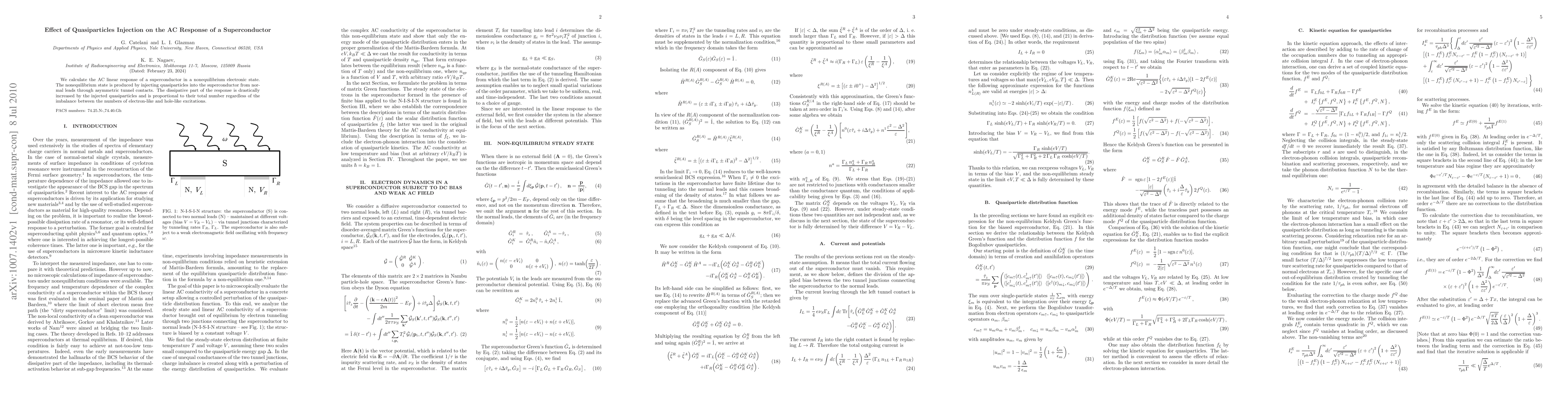 This study investigates the AC linear response of a superconductor when quasiparticles are injected, finding that the dissipative response increases significantly and is directly proportional to the total number of injected quasiparticles, irrespective of their type.