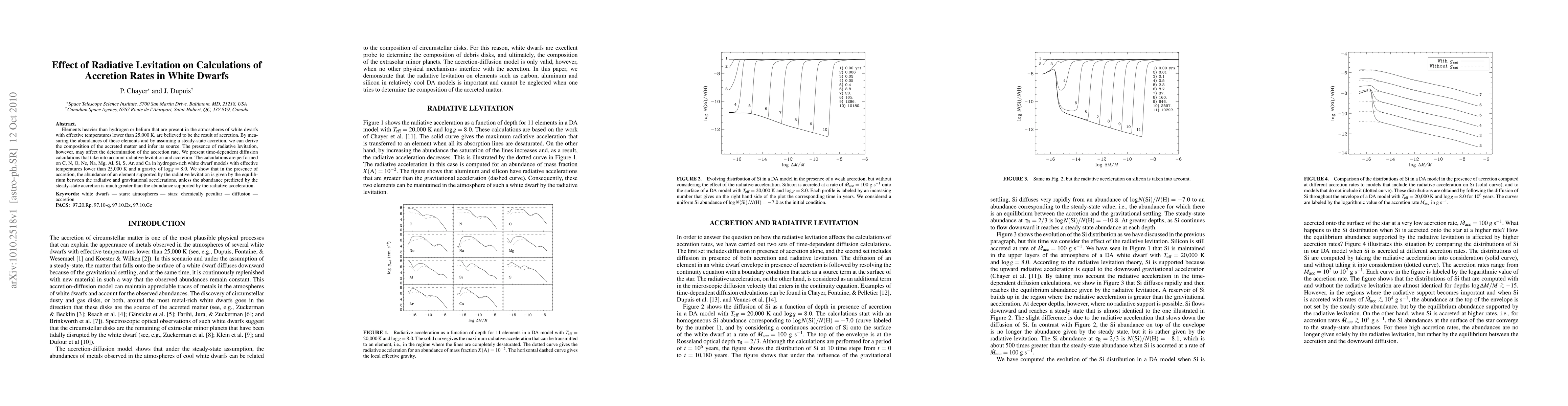 Elements heavier than hydrogen or helium that are present in the atmospheres of white dwarfs with effective temperatures lower than 25,000 K, are believed to be the result of accretion. By measuring the abundances of these elements and by assuming a steady-state accretion, we can derive the composition of the accreted matter and infer its source. The presence of radiative levitation, however, may affect the determination of the accretion rate. We present time-dependent diffusion calculations that take into account radiative levitation and accretion. The calculations are performed on C, N, O, Ne, Na, Mg, Al, Si, S, Ar, and Ca in hydrogen-rich white dwarf models with effective temperatures lower than 25,000 K and a gravity of log g = 8.0. We show that in the presence of accretion, the abundance of an element supported by the radiative levitation is given by the equilibrium between the radiative and gravitational accelerations, unless the abundance predicted by the steady-state accretion is much greater than the abundance supported by the radiative acceleration.