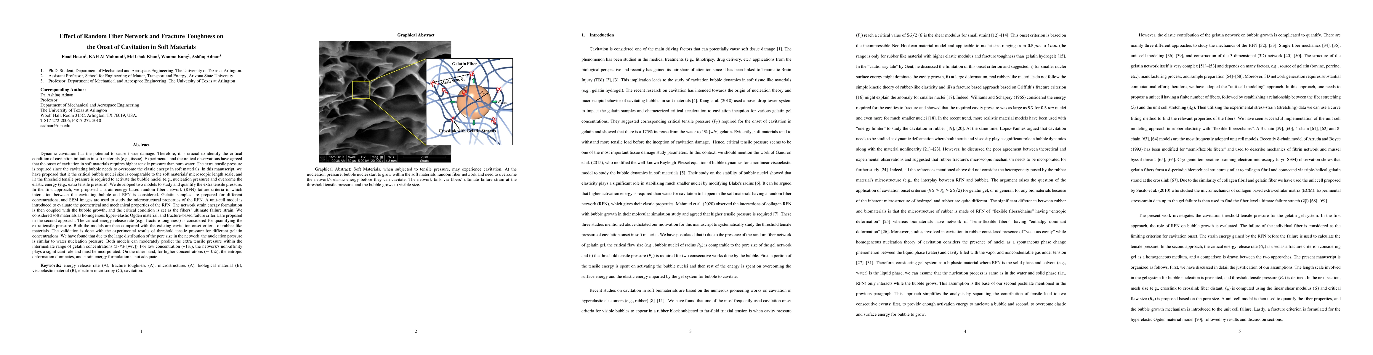 Researchers developed two models to study the extra tensile pressure required for cavitation in soft materials, finding that strain energy formulation is adequate for intermediate concentrations but fails for higher concentrations due to entropic deformation.