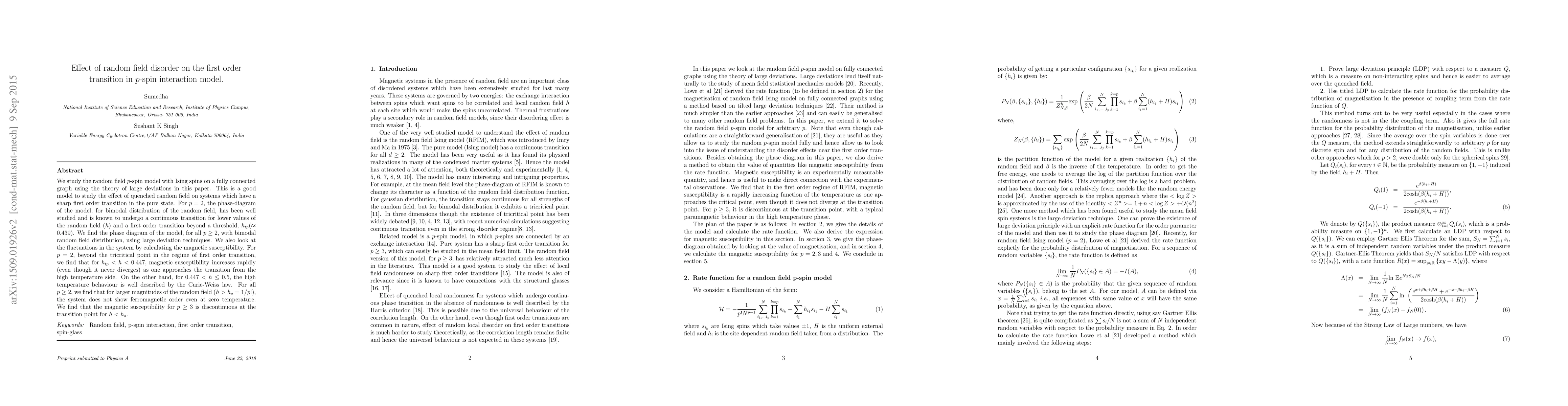 field ($h$) and a first order transition beyond a threshold, $h_{tp}(\approx