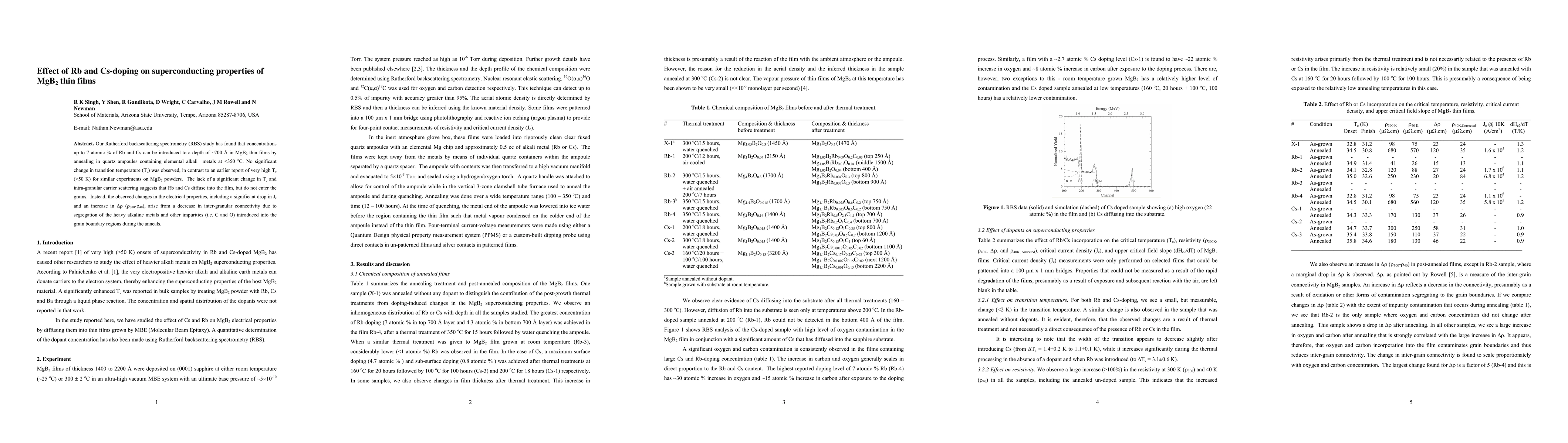Researchers found that doping MgB2 thin films with Rb and Cs doesn't increase their superconducting temperature, but instead causes a drop in current density and inter-granular connectivity due to segregation of impurities at grain boundaries.