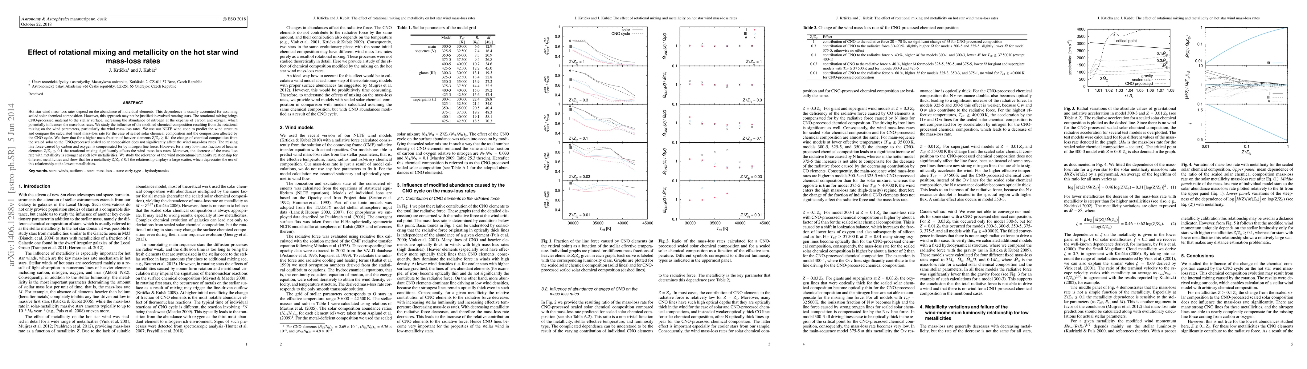The research investigates how rotational mixing affecting element abundances in hot stars influences mass-loss rates. Utilizing a NLTE wind code, the study finds that for higher metallicity (Z/Z_sun >= 0.1), the modified composition from CNO cycle does not significantly alter mass-loss rates as nitrogen's line force compensates for the missing carbon and oxygen forces. However, at lower metallicities (Z/Z_sun <= 0.1), rotational mixing significantly impacts mass-loss rates, and the wind momentum-luminosity relationship shows substantial scatter, diminishing its usefulness at the lowest metallicities.