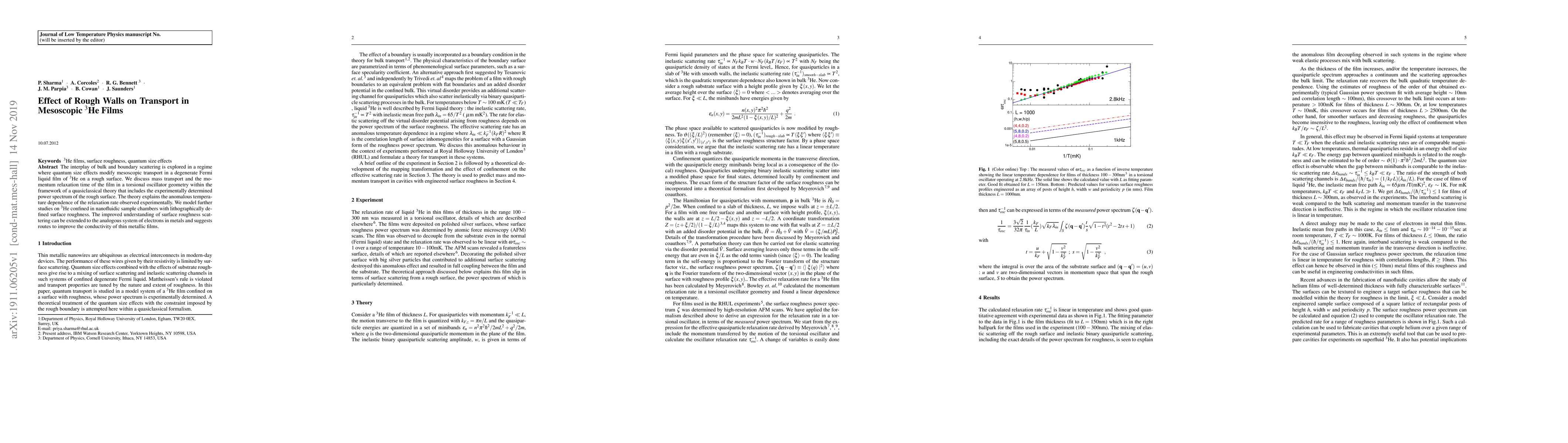 The interplay of bulk and boundary scattering is explored in a regime where quantum size effects modify mesoscopic transport in a degenerate Fermi liquid film of $^3$He on a rough surface. We discuss mass transport and the momentum relaxation time of the film in a torsional oscillator geometry within the framework of a quasiclassical theory that includes the experimentally determined power spectrum of the rough surface. The theory explains the anomalous temperature dependence of the relaxation rate observed experimentally. We model further studies on $^3$He confined in nanofluidic sample chambers with lithographically defined surface roughness. The improved understanding of surface roughness scattering can be extended to the analogous system of electrons in metals and suggests routes to improve the conductivity of thin metallic films.