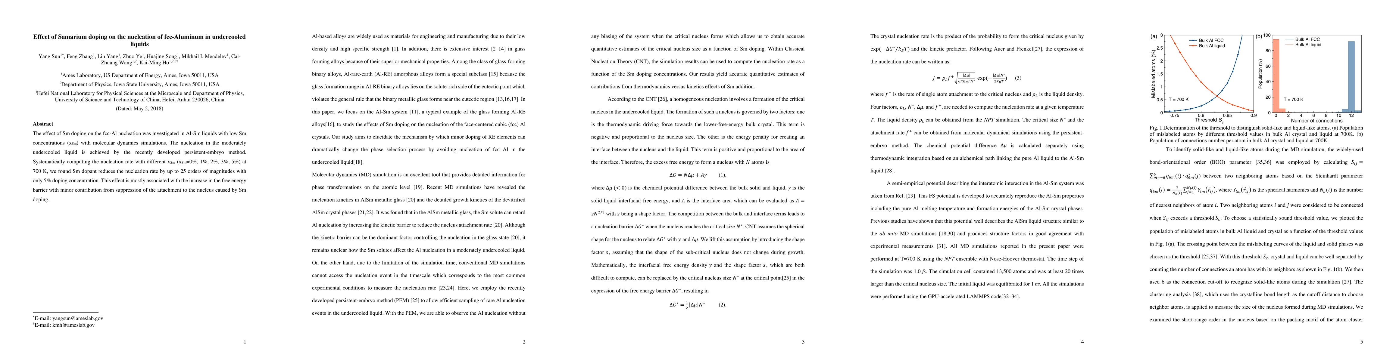 Samarium doping significantly reduces the nucleation rate of fcc-Aluminum in undercooled Al-Sm liquids, up to 25 orders of magnitude with only 5% Sm concentration, primarily by increasing the free energy barrier. Minor effects also arise from the suppression of nucleus attachment due to Sm doping.