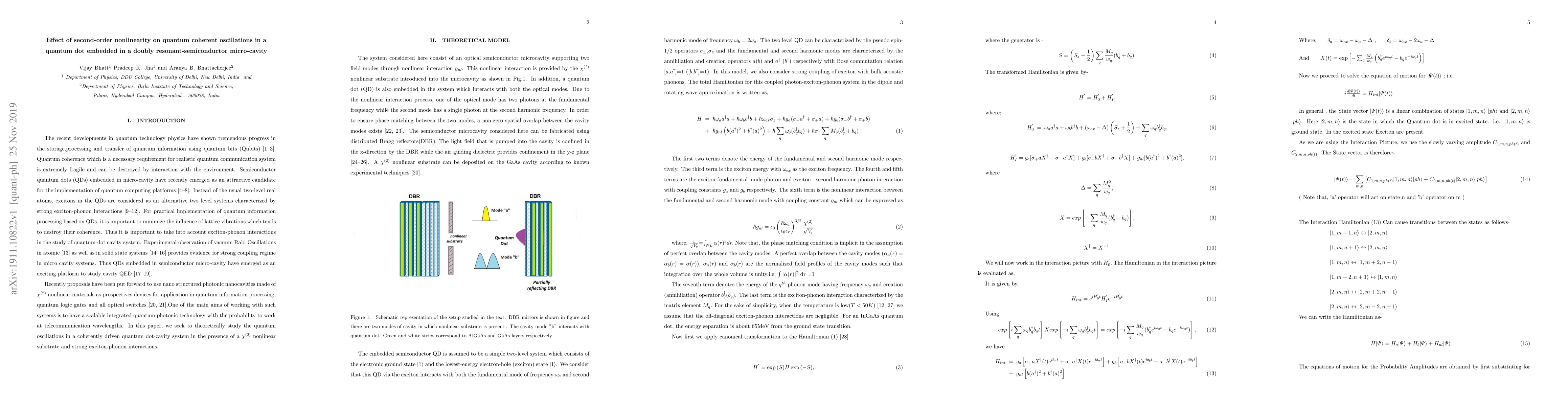 The quantum Rabi oscillations in a coherently driven quantum dot embedded in a high-Q doubly resonant semiconductor micro-cavity in the presence of a strong second-order nonlinear medium is investigated theoretically. It is shown that the second order nonlinearity effect the Rabi oscillations in a significant manner.