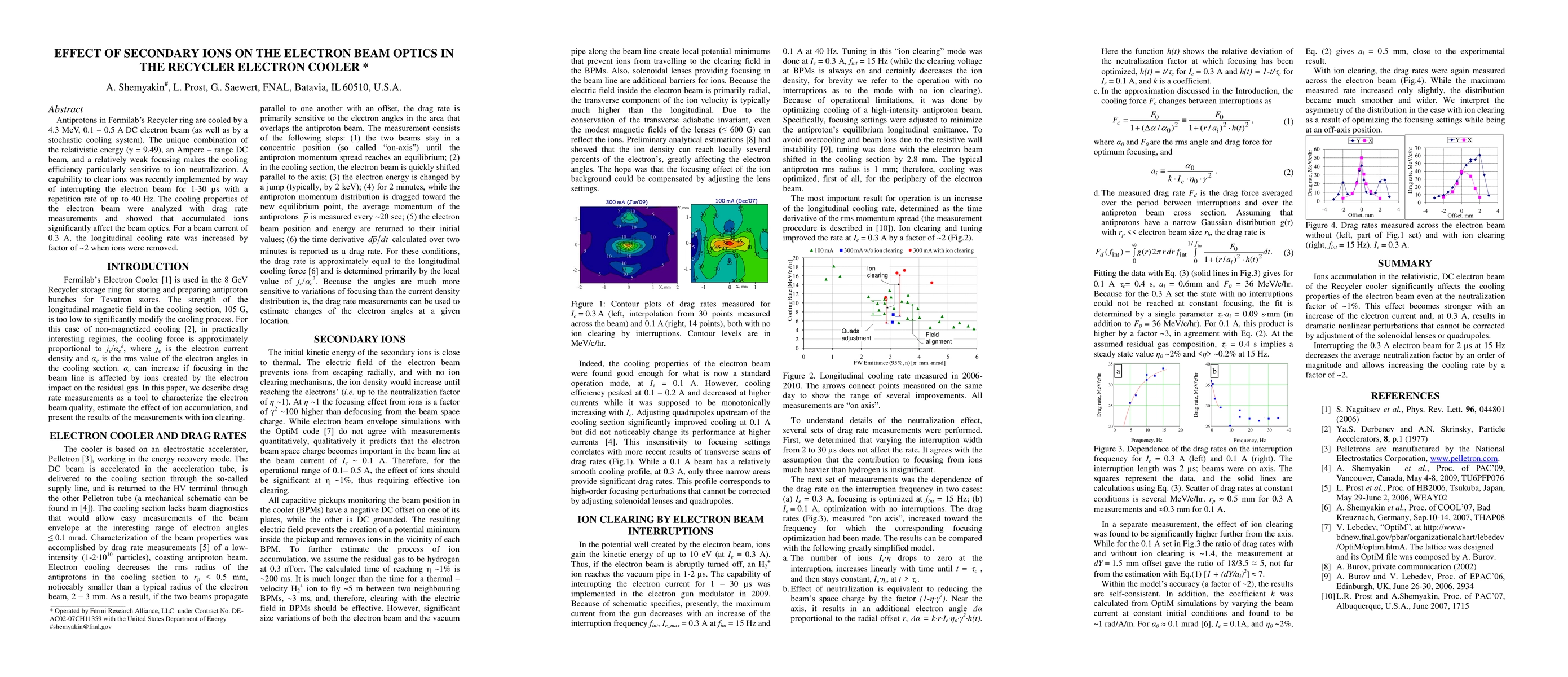 Antiprotons in Fermilab's Recycler ring are cooled by a 4.3 MeV, 0.1 - 0.5 A DC electron beam (as well as by a stochastic cooling system). The unique combination of the relativistic energy ({\gamma} = 9.49), an Ampere - range DC beam, and a relatively weak focusing makes the cooling efficiency particularly sensitive to ion neutralization. A capability to clear ions was recently implemented by way of interrupting the electron beam for 1-30 \mus with a repetition rate of up to 40 Hz. The cooling properties of the electron beam were analyzed with drag rate measurements and showed that accumulated ions significantly affect the beam optics. For a beam current of 0.3 A, the longitudinal cooling rate was increased by factor of ~2 when ions were removed.