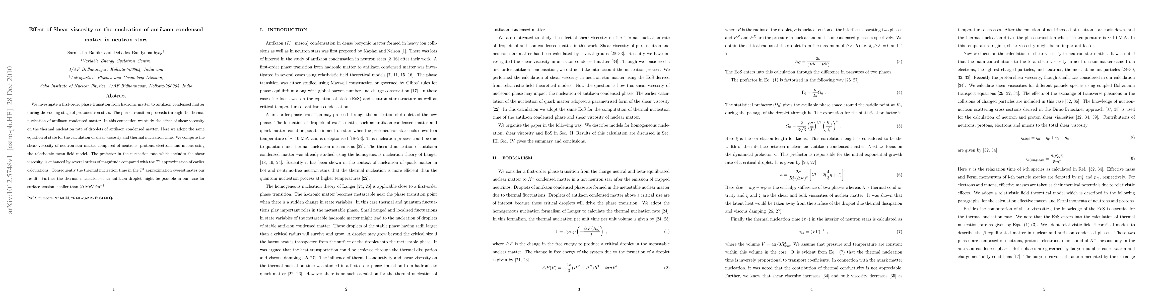 This paper examines how shear viscosity influences the nucleation of antikaon condensed matter in neutron stars during their cooling phase. The study finds that shear viscosity significantly enhances the nucleation rate, leading to a much shorter thermal nucleation time than previously estimated.