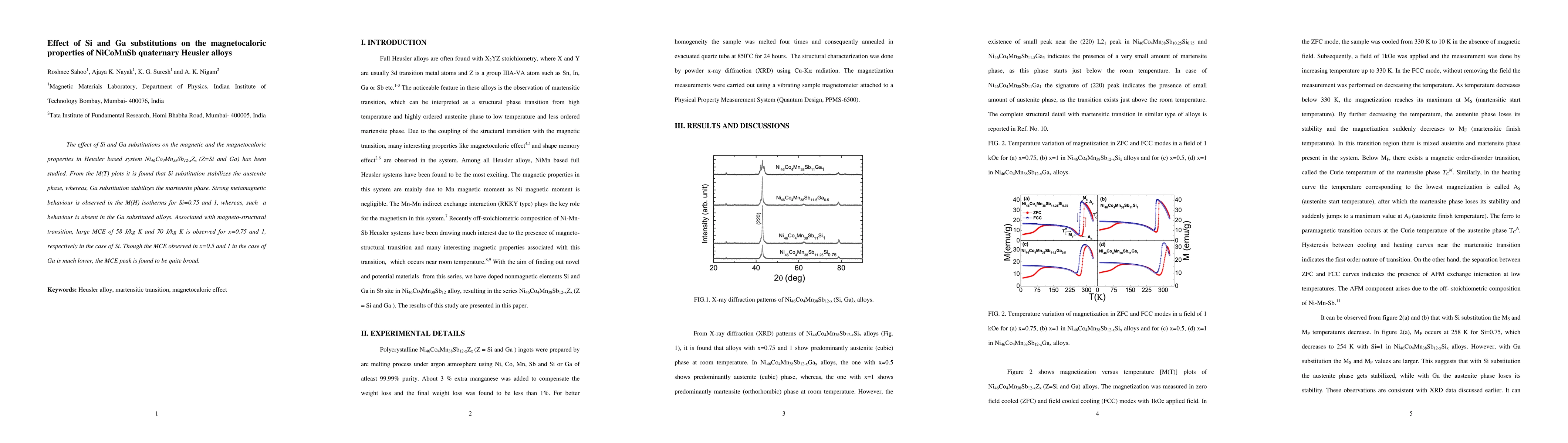 The effect of Si and Ga substitutions on the magnetic and the magnetocaloric properties in Heusler based system Ni46Co4Mn38Sb12-xZx (Z=Si and Ga) has been studied. From the M(T) plots it is found that Si substitution stabilizes the austenite phase, whereas, Ga substitution stabilizes the martensite phase. Strong metamagnetic behaviour is observed in the M(H) isotherms for Si=0.75 and 1, whereas, such a behaviour is absent in the Ga substituted alloys. Associated with magneto-structural transition, large MCE of 58 J/kg K and 70 J/kg K is observed for x=0.75 and 1, respectively in the case of Si. Though the MCE observed in x=0.5 and 1 in the case of Ga is much lower, the MCE peak is found to be quite broad.