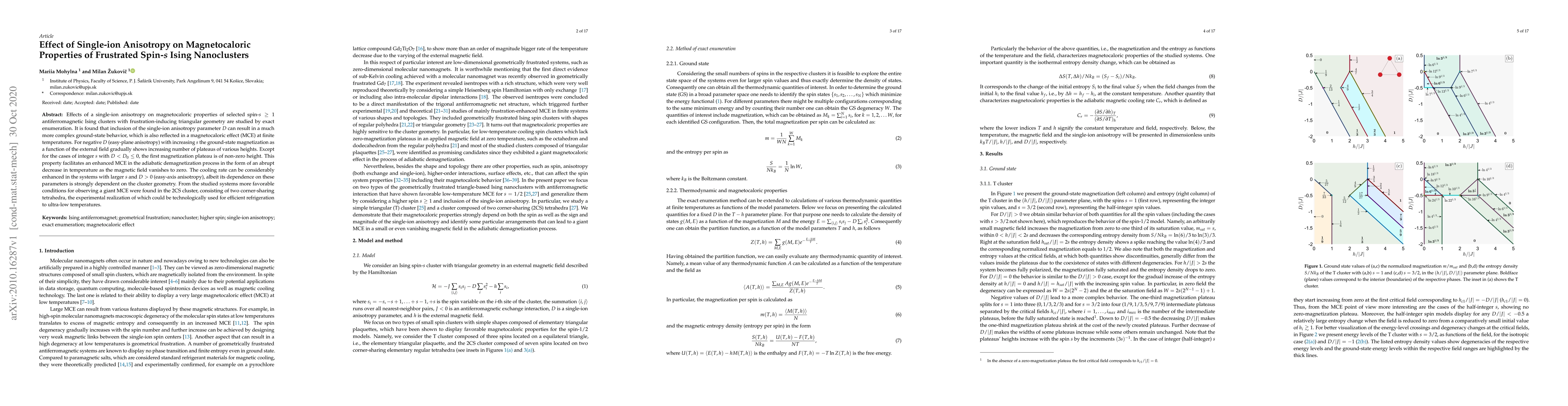 This paper investigates how single-ion anisotropy affects the magnetocaloric properties of frustrated spin-$s$ Ising nanoclusters, revealing that it leads to complex ground-state behaviors and enhanced magnetocaloric effects at finite temperatures, especially in systems with larger spin values and specific anisotropy parameters. The study identifies the 2CS cluster as a promising candidate for efficient refrigeration at ultra-low temperatures.