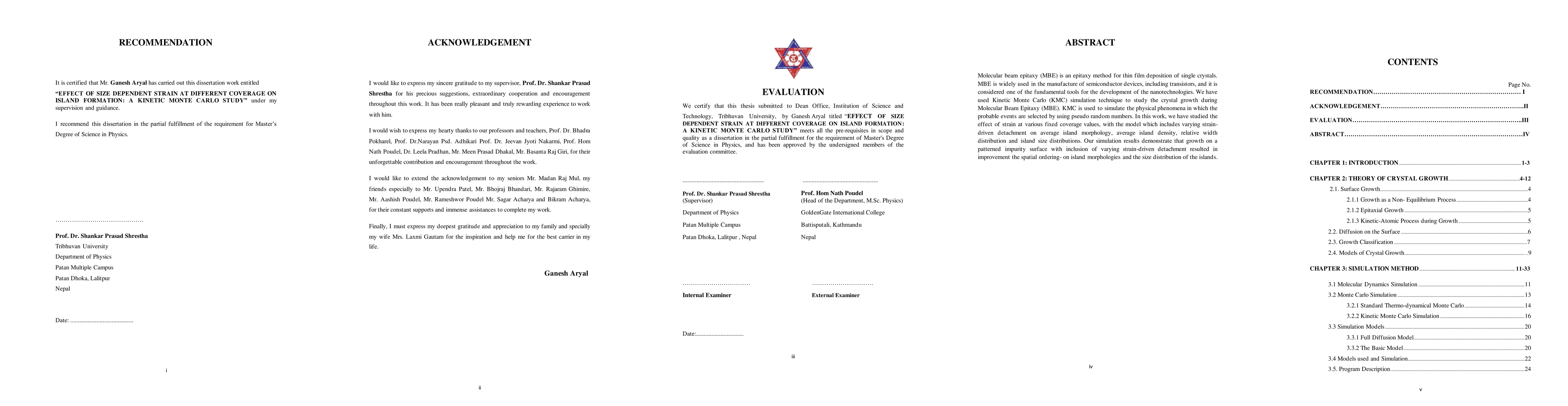 Molecular beam epitaxy (MBE) is an epitaxy method for thin film deposition of single crystals. MBE is widely used in the manufacture of semiconductor devices, including transistors, and it is considered one of the fundamental tools for the development of the nanotechnologies. We have used Kinetic Monte Carlo (KMC) simulation technique to study the crystal growth during Molecular Beam Epitaxy (MBE). KMC is used to simulate the physical phenomena in which the probable events are selected by using pseudo random numbers. In this work, we have studied the effect of strain at various fixed coverage values, with the model which includes varying strain-driven detachment on average island morphology, average island density, relative width distribution and island size distributions. Our simulation results demonstrate that growth on a patterned impurity surface with inclusion of varying strain-driven detachment resulted in improvement the spatial ordering on island morphologies and the size distribution of the islands.