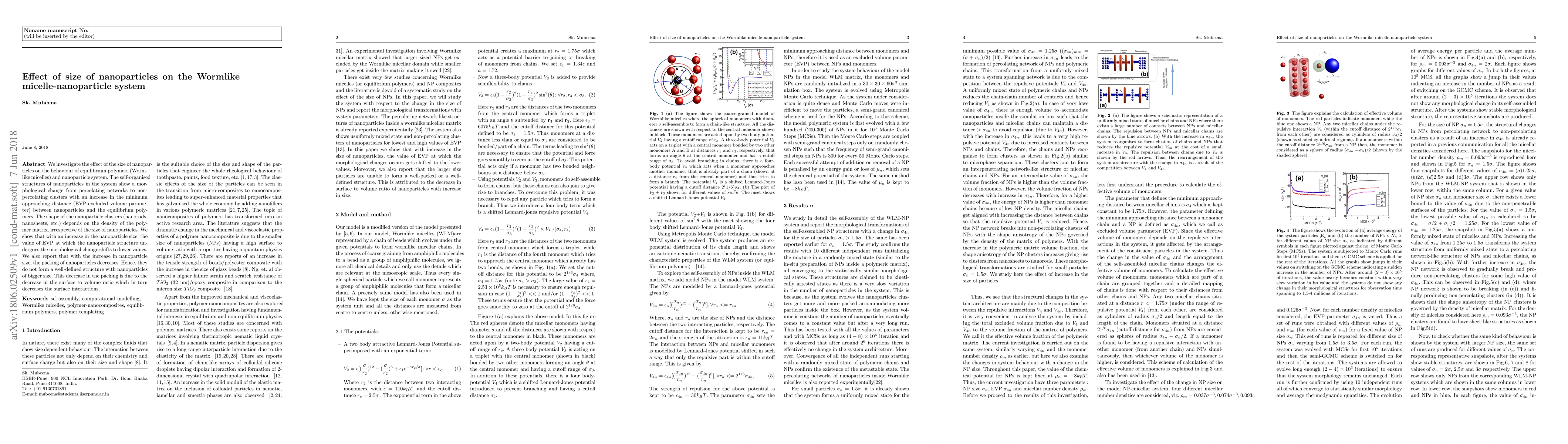 This study examines how nanoparticle size influences the behavior of wormlike micelles in a nanoparticle-polymer system, revealing a shift in nanoparticle structure from percolating networks to non-percolating clusters with increased EVP. The packing density of nanoparticles decreases with size, leading to less defined structures due to reduced surface interactions.