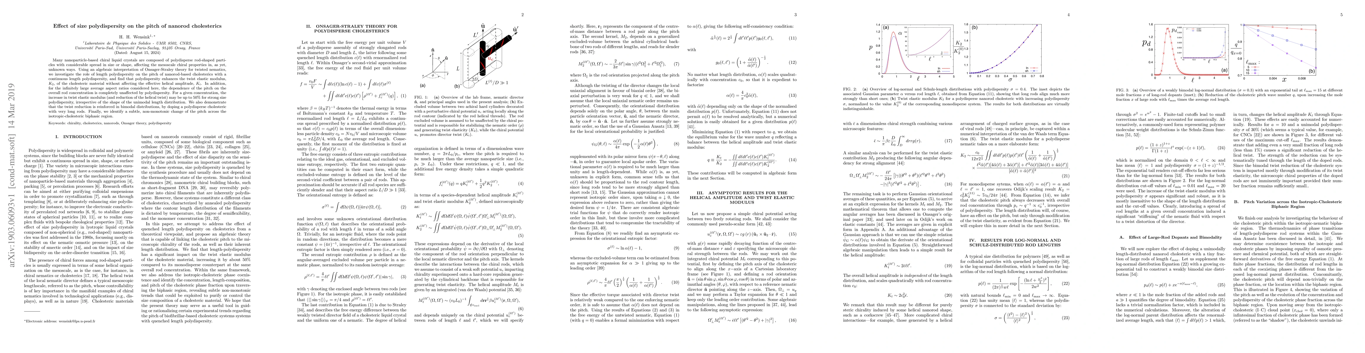 Many nanoparticle-based chiral liquid crystals are composed of polydisperse rod-shaped particles with considerable spread in size or shape, affecting the mesoscale chiral properties in, as yet, unknown ways. Using an algebraic interpretation of Onsager-Straley theory for twisted nematics, we investigate the role of length polydispersity on the pitch of nanorod-based cholesterics with a continuous length polydispersity, and find that polydispersity enhances the twist elastic modulus, $K_{2}$, of the cholesteric material without affecting the effective helical amplitude, $K_{t}$. In addition, for the infinitely large average aspect ratios considered here, the dependence of the pitch on the overall rod concentration is completely unaffected by polydispersity. For a given concentration, the increase in twist elastic modulus (and reduction of the helical twist) may be up to 50% for strong size polydispersity, irrespective of the shape of the unimodal length distribution. We also demonstrate that the twist reduction is reinforced in bimodal distributions, by doping a polydisperse cholesteric with very long rods. Finally, we identify a subtle, non-monotonic change of the pitch across the isotropic-cholesteric biphasic region.