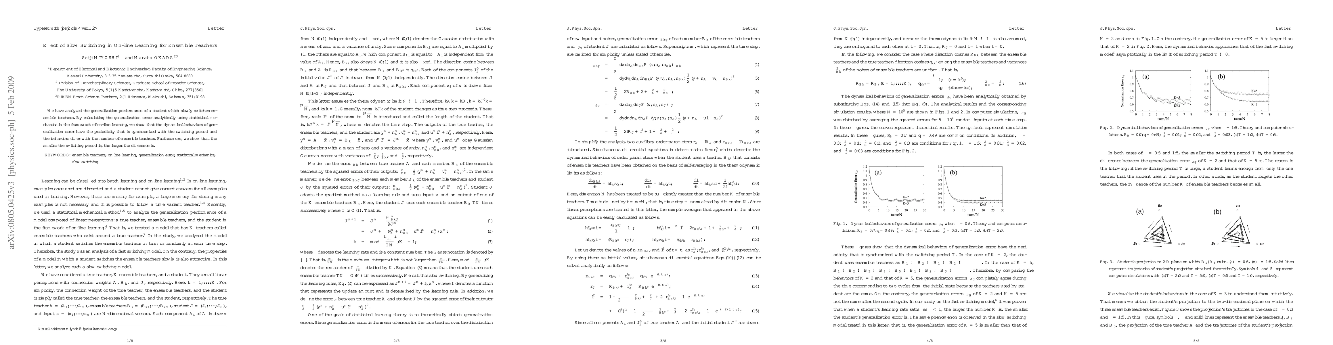 We have analyzed the generalization performance of a student which slowly switches ensemble teachers. By calculating the generalization error analytically using statistical mechanics in the framework of on-line learning, we show that the dynamical behaviors of generalization error have the periodicity that is synchronized with the switching period and the behaviors differ with the number of ensemble teachers. Furthermore, we show that the smaller the switching period is, the larger the difference is.