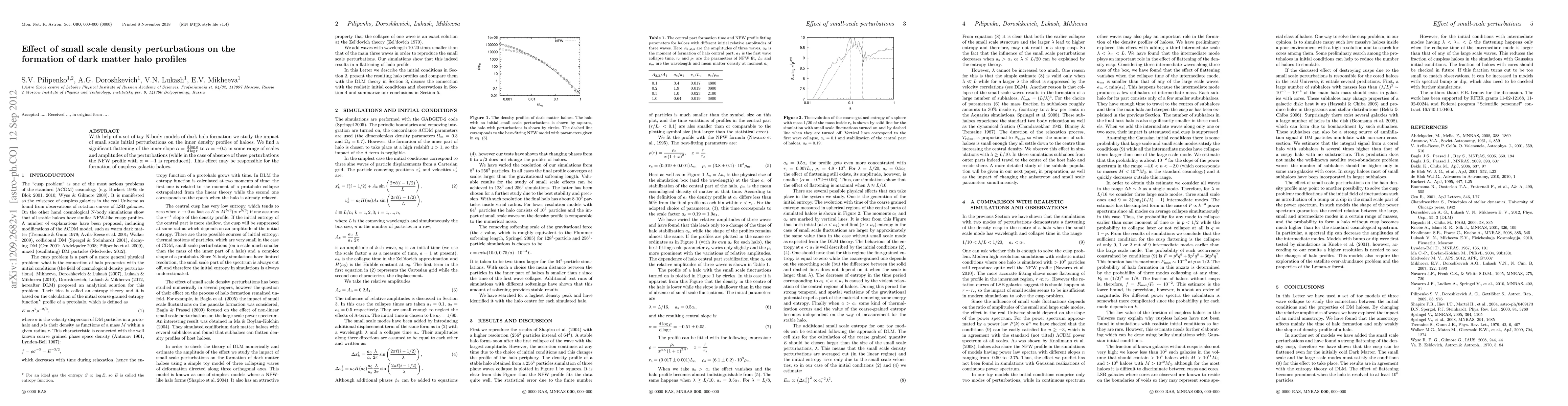 With help of a set of toy N-body models of dark halo formation we study the impact of small scale initial perturbations on the inner density profiles of haloes. We find a significant flattening of the inner slope $\alpha={d \log \rho \over d \log r}$ to $\alpha=-0.5$ in some range of scales and amplitudes of the perturbations (while in the case of absence of these perturbations the NFW profile with $\alpha=-1$ is reproduced). This effect may be responsible for the formation of cuspless galactic haloes.